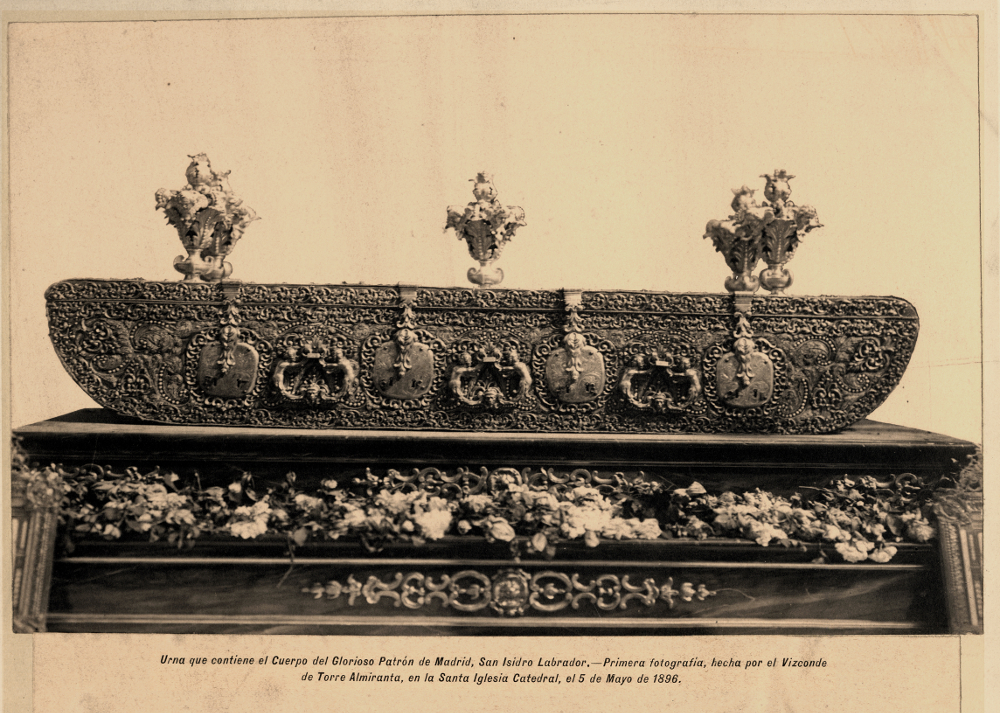 En el siglo XVII como consecuencia de un momento de extrema estimación de las reliquias se acomete el traslado de algunos de estos vestigios a nuevas arcas o urnas, que estuvieran en mayor consonancia con la importancia de los restos que albergaban. En Madrid llama la atención la especial relevancia de San Isidro Labrador, quien desde el siglo XI había sido objeto de culto tanto por parte del pueblo como de los monarcas. Éstos últimos, en su lecho de muerte o ante graves enfermedades, confiaban su alma o recuperación al Santo. Ese fue el caso de la reina Mariana de Neoburgo, que en 1691 estando gravemente enferma se encomendó al Santo. Como agradecimiento al restablecimiento de su salud, en 1692, la soberana regaló a San Isidro una nueva urna compuesta por madera, seda bordada y plata. Con ésta se sustituía la vieja de madera pintada, que hoy en día puede verse en la Catedral de la Almudena, y se dotaba así a los sagrados restos de un receptáculo de mayor lujo y solemnidad.