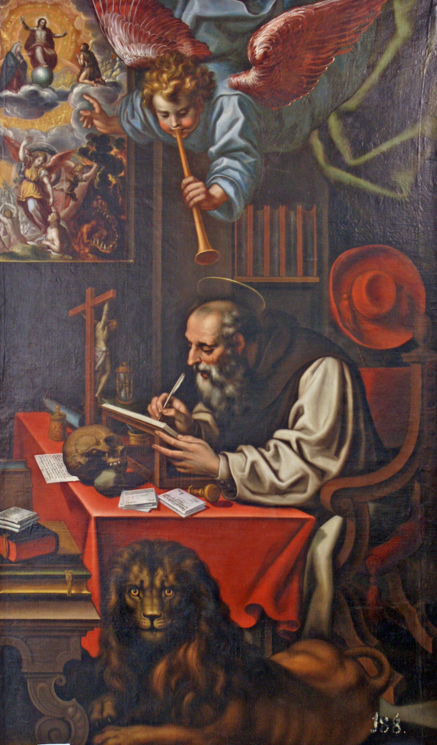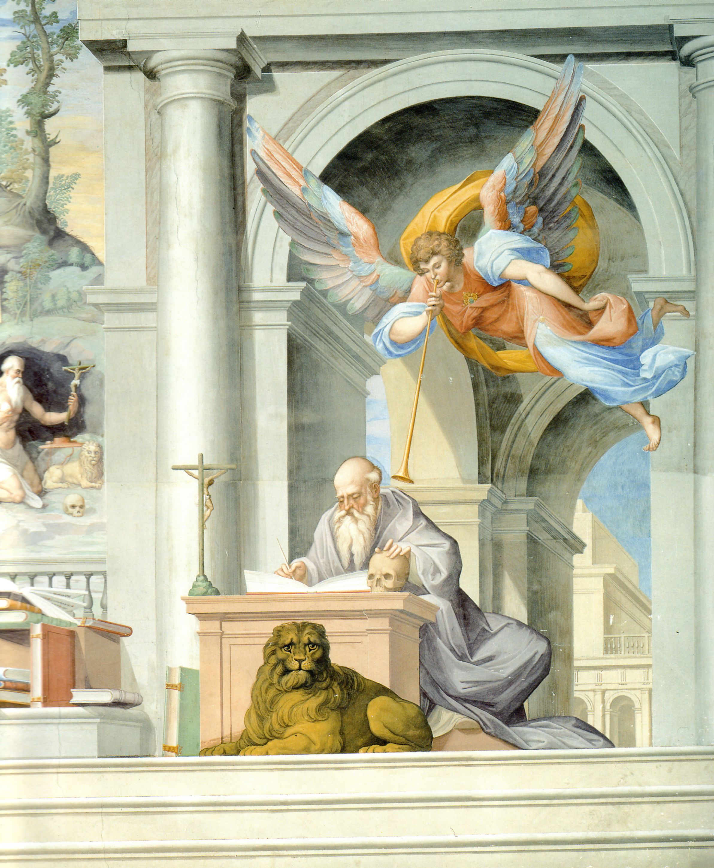 Será a partir de 1591 cuando lleve a cabo algunas de sus obras menos conocidas, algunas de ellas afortunadamente conservadas en el Museo Provincial de Guadalajara. Todas han de ponerse en relación con el monasterio jerónimo de San Bartolomé de Lupiana, casa madre de la orden y desde donde saldrían los primeros monjes con destino a El Escorial. Pues bien, para dicho lugar y contando con la colaboración de varios ayudantes, realizará toda una serie de óleos en los que, seguramente por petición del prior del monasterio, copiará y versionará buena parte de las pinturas que Juan Fernández Navarrete el Mudo había realizado para Felipe II pocos años antes. Junto a ellos pintará dos bellísimos cuadros en los que reelaborará algunas de sus decoraciones murales en el monasterio filipino –nos referimos al bellísimo San Jerónimo con el ángel trompetero – y donde demostrará, ya al final de su vida, su admiración por la obra de Tiziano. Así se desprende de su lienzo Los santos Juanes, pintura que reproduce un original perdido de Navarrete en la que la figura de San Juan Bautista no es sino la reproducción invertida del famoso cuadro de Tiziano pintado para el rey en 1574 y que aún se guarda en El Escorial.