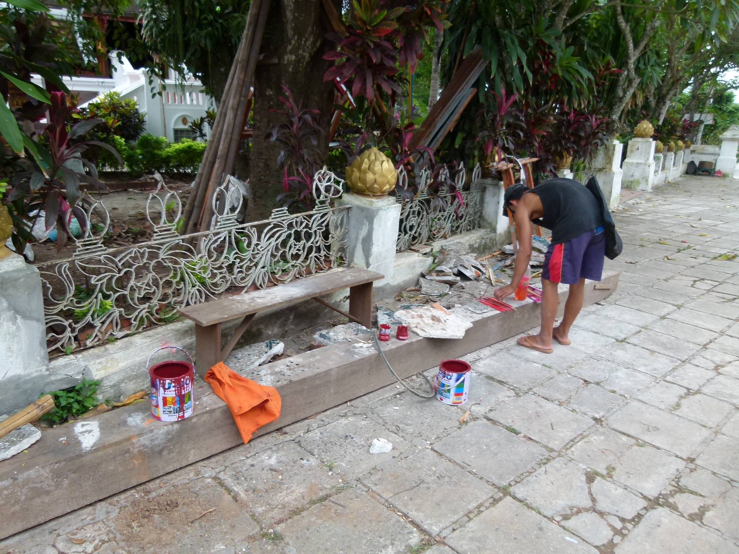 Imágenes de la «resturación» de una de las Stupas del Wat Xieng Thong: