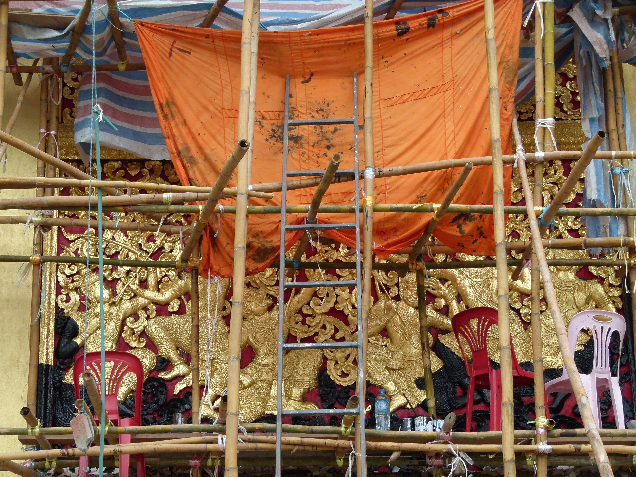 Como algunos de vosotros ya sabréis, parte del equipo de Investigart ha estado este verano de vacaciones en el Norte de Tailandia y Laos. No penséis ni por un momento que hemos estado tumbados a la bartola en una playa… para nada, ese no es nuestro estilo ni modelo de ocio. De hecho, lo que hemos hecho es visitar en plan intensivo todos los parques arqueológicos, templos, monumentos y museos que existen a lo largo del recorrido que nos habíamos marcado. Eso es con lo que más disfrutamos del mundo y el tipo de vacaciones que nos parecen perfectas. Ver otras culturas, otra gastronomía, otro tipo de vida… En Asia ya hemos visitado diversos lugares y ciertamente hay pocas cosas que nos choquen. Sin embargo, en esta ocasión hubo algo que si nos llamó poderosamente la atención. Mientras que encontramos lugares en los que se habían llevado a cabo o se estaban realizando restauraciones cuidadas y minuciosas en cooperación con instituciones de nivel mundial (americanas, alemanas o francesas), nos sorprendió un templo en el que se estaba haciendo una auténtica chapuza, o lo que a partir de ahora denominaremos como una restauración al Tintalux.