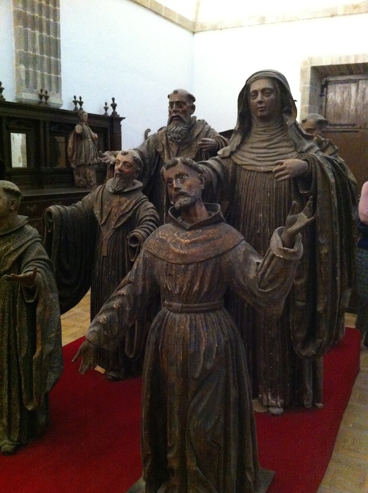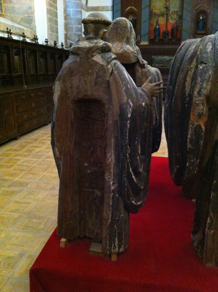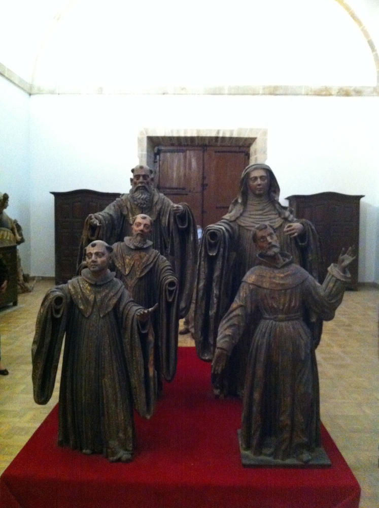 En 1835 los monjes benedictinos son expulsados del edificio durante la Desamortización de Mendizábal. El monasterio permanecerá vacio por un tiempo, hasta que en 1860 se instala en él una comunidad de dominicos. Esto propició que algunas de las esculturas que ornaban los retablos principales fueran sustituidas por figuras religiosas de los dominicos. Es por ello que en la sacristia de la Iglesia se conservan una serie de imágenes que primigeniamente formaban parte de la decoración. La presencia de estas esculturas en la sacristía permite ver de cerca el trabajo de los escultores y cómo las imágenes de mayor tamaño se vaciaban por su parte posterior para aminorar el peso de las estructuras.