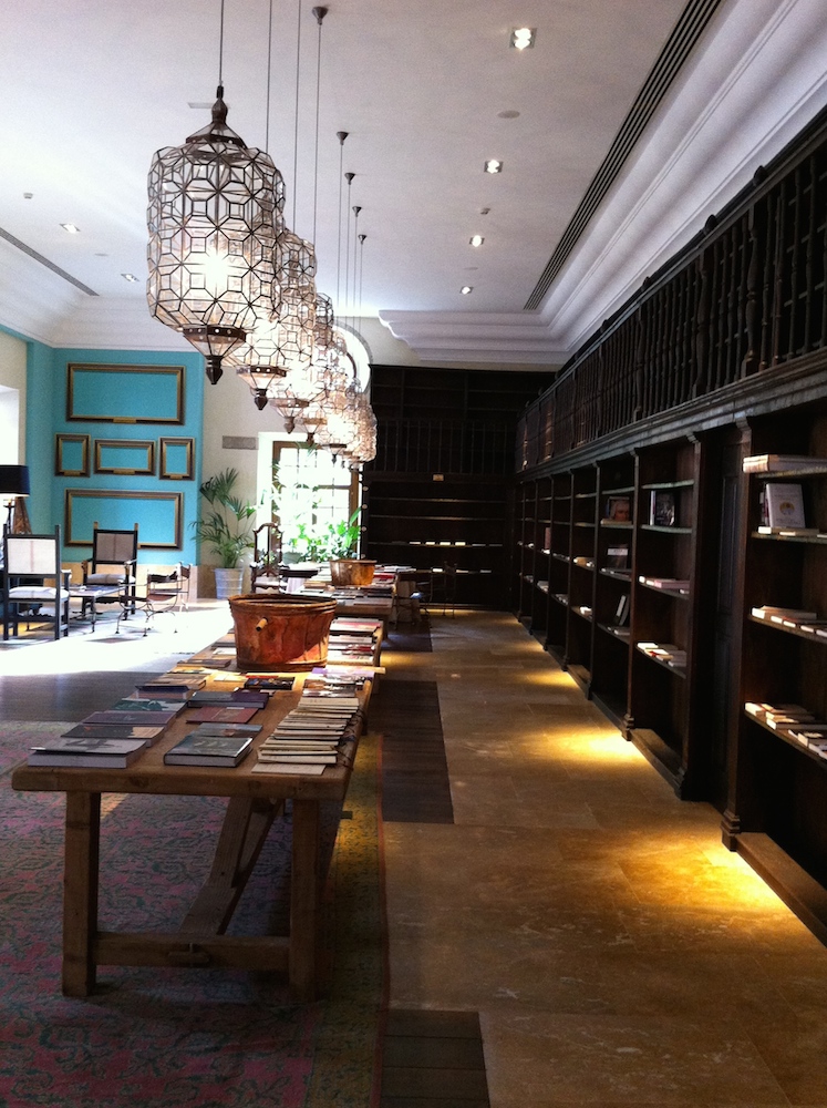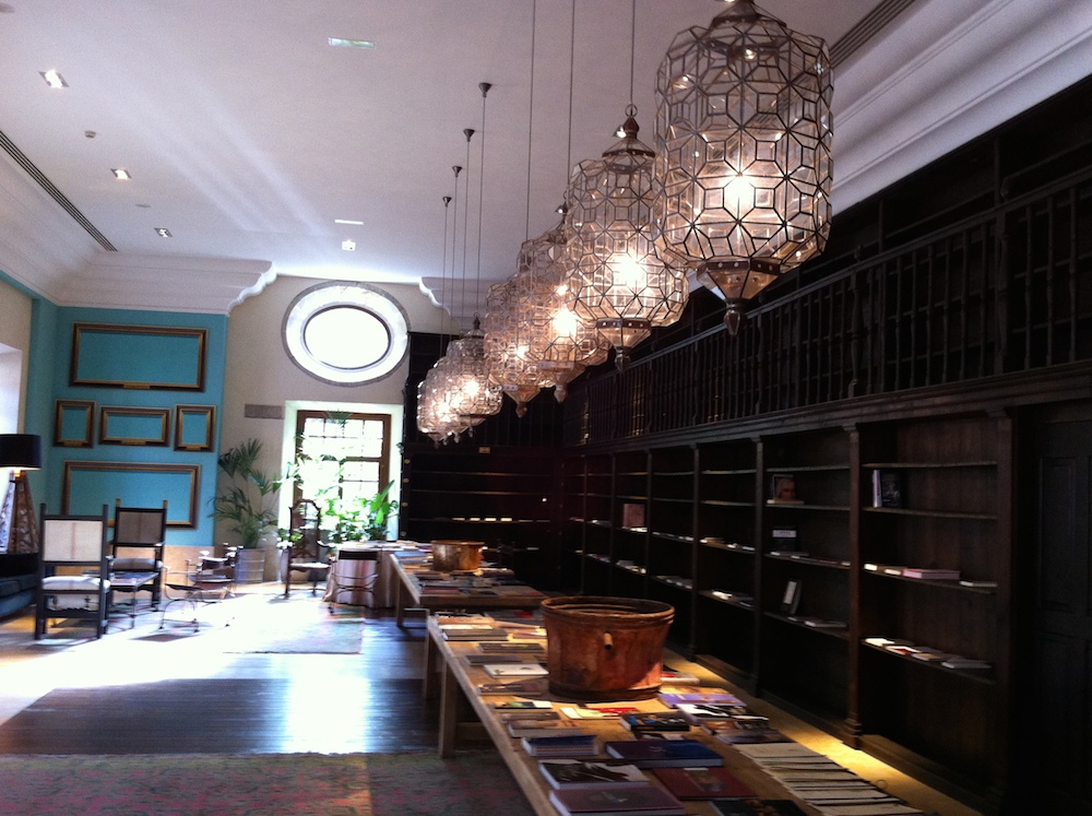 La biblioteca con las obras de Rui Macedo colgando de sus muros