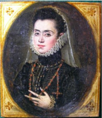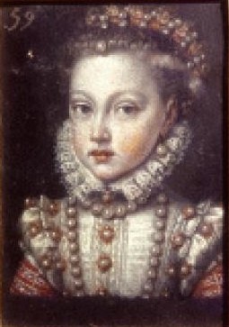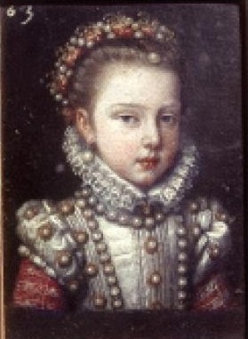 Alonso Sánchez Coello: Detalle del retrato de Isabel Clara Eugenia y Magdalena Ruiz, 1585-1588. Museo Nacional del Prado, Madrid.