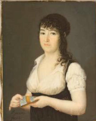 Ya hemos hablado en post anteriores (aquí y aquí) de la miniatura retrato, explicando las circunstancias que propiciaron el auge de este género. Reservamos para hoy una pequeña muestra de retratos miniatura hechos con otra técnica muy distinta a la de los retraticos de los que hablábamos en semanas anteriores. Los retratos de los que hemos hablado hasta ahora, no dejan de ser pinturas realizadas con la técnica tradicional de soporte lienzo y al óleo, pero hay otro tipo de pinturas de pequeño tamaño, realizadas con una técnica totalmente distinta. Se trataría de pinturas sobre un soporte de vitela, que se pegaba con ajicola o almidón al cartón, y también se tensaba sobre láminas de cobre esmaltado. No dejaría nunca de usarse, pero a partir de mediados del siglo XVIII se sustituyó poco a poco por tablillas de marfil, que llegaban a cortarse tan finas como el propio pergamino. Eran obras pintadas inicialmente con colores diluidos en agua, utilizando goma arábiga como aglutinante, y desde mediados del XVIII gouache.