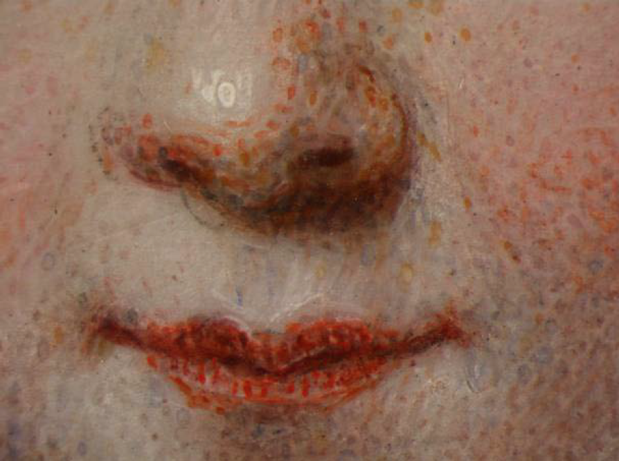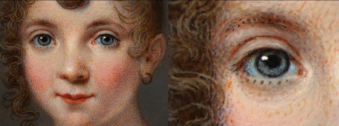 Eso es lo que podemos observar en este retrato de niña del Prado, realizado mediante puntillismo, y entre el punteado se puede apreciar también el dibujo previo realizado a lápiz.