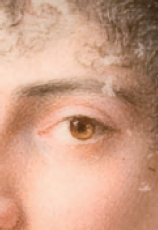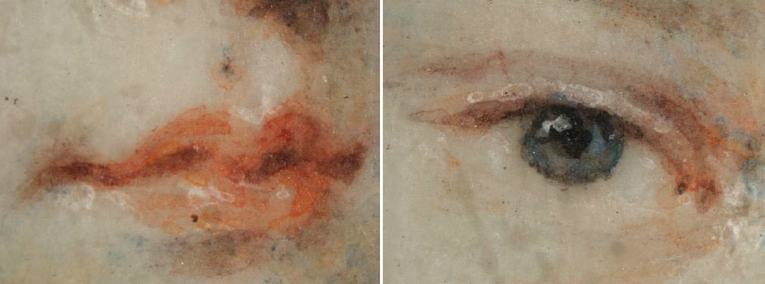 Aquí podemos observar cómo la oxidación del pan de plata produce un oscurecimiento que se trasluce en las carnaciones del retrato.