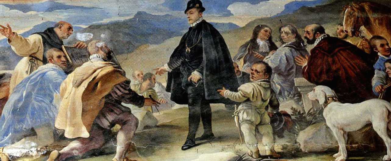 Obra del pintor napolitano Luca Giordano, fue realizado entre 1692 y 1694 por encargo del monarca Carlos II. El fresco se situa bajo la bóveda que cierra la caja de la escalera principal del Monasterio de El Escorial. Su temática hace referencia a la fundación y construcción del propio Monasterio por encargo de los reyes fundadores de la dinastía, Carlos V y Felipe II.