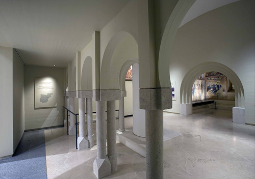 En 1957 se produce un canje entre el MET de New York y el Museo del Prado que presta, en calidad de depósito indefinido, seis lienzos a cambio del ábside románico de la iglesia de San Martín de Fuentidueña (Segovia) que decora actualmente una de las salas del “Cloister Museum” (Subsede del MOMA). Estos fragmentos recuperados formaban parte del registro inferior y de la galería del coro. Y así Madrid, en el Museo del Prado, cuenta con unos de los frescos mozárabes más antiguos de la península. Sus colores primarios no restan belleza a estas curiosas pinturas que muestran la visión del mundo que tenían aquellos hombres que, a pesar de estar decorando el interior de un templo, plasmaron elementos de una temática profana junto a la religiosa. Junto a estas joyas podremos contemplar otras pinturas murales como las de al ermita de la Vera Cruz de Maderuelo, también conservadas en este museo.
