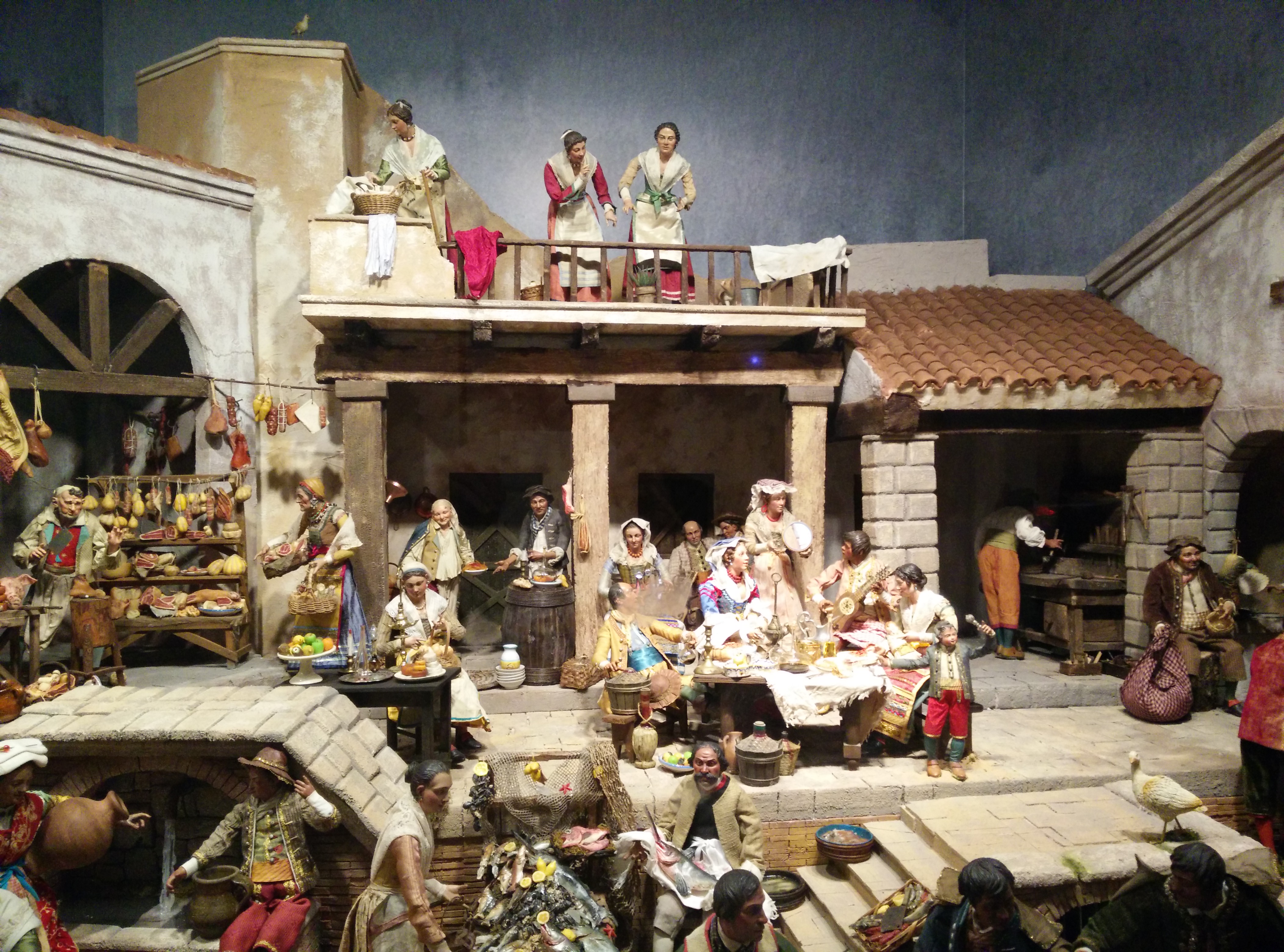 La tradición belenística napolitana en España se remonta al siglo XV. Durante años los virreyes españoles en Nápoles encargaron numerosos belenes que hicieron llegar a España. Sin embargo no fue hasta la llegada de Carlos III en 1759, quien gustaba especialmente de este tipo de piezas, cuando el coleccionismo de éstos se difundió entre los cortesanos. Los belenes pasaron entonces de estar circunscritos al ámbito eclesiástico a convertirse en divertimentos para monarcas y nobles. Eran complejas manifestaciones efímeras, de frecuencia anual, que promocionaban las artes aplicadas y que reflejaban la vida popular y la ceremonia nobiliaria. En éstos la Natividad quedaba reducida a una escena más, siendo los verdaderos protagonistas los pastores, artesanos, vendedores, campesinos, tenderetes de todo tipo y los animales diversos.