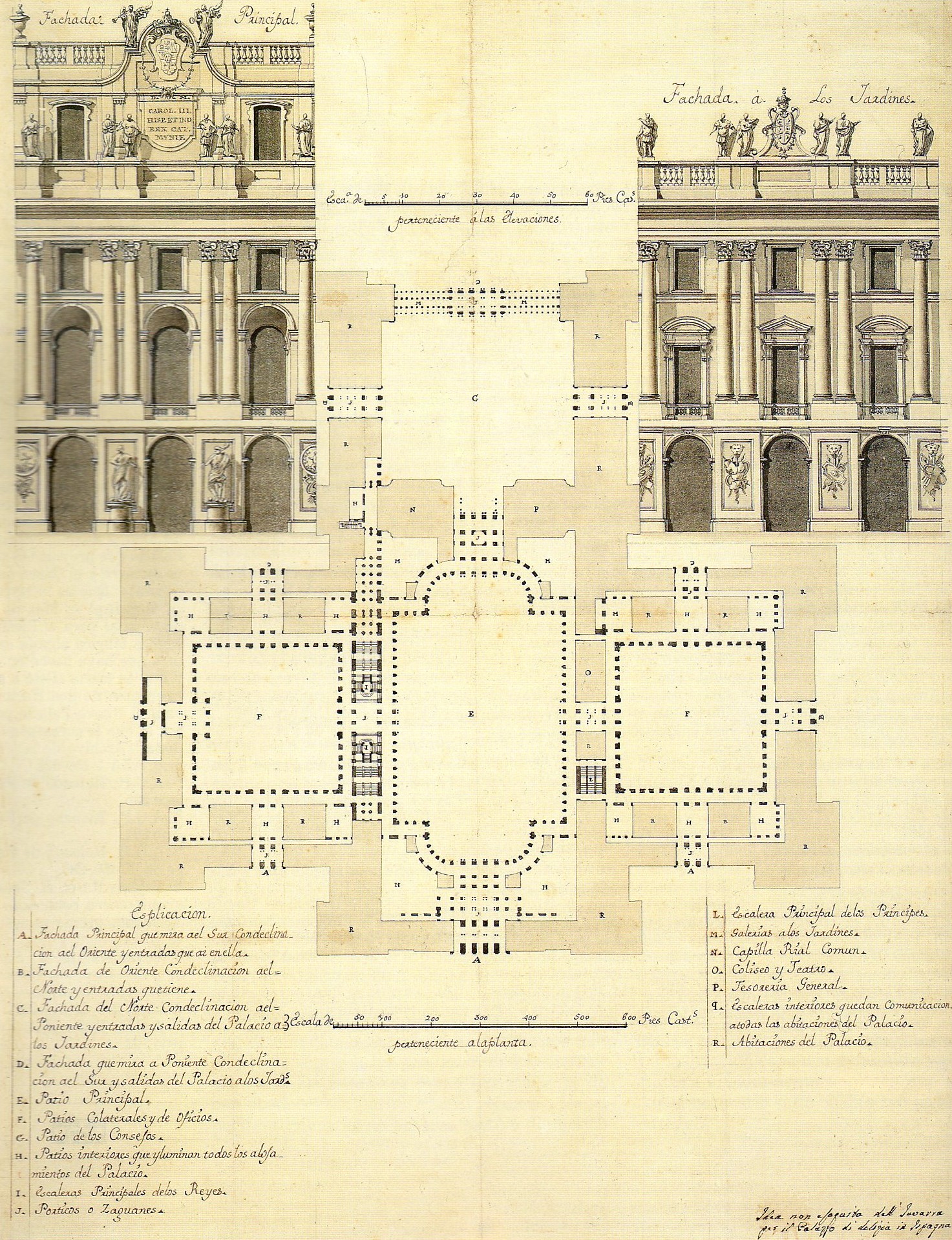 Juan Bautsita Sachetti: Proyecto para el Palacio Real, 1752. Museo de Historia de Madrid. Calco sobre un original perdido, realizado en 1847 por el ingeniero Juan Ribera.