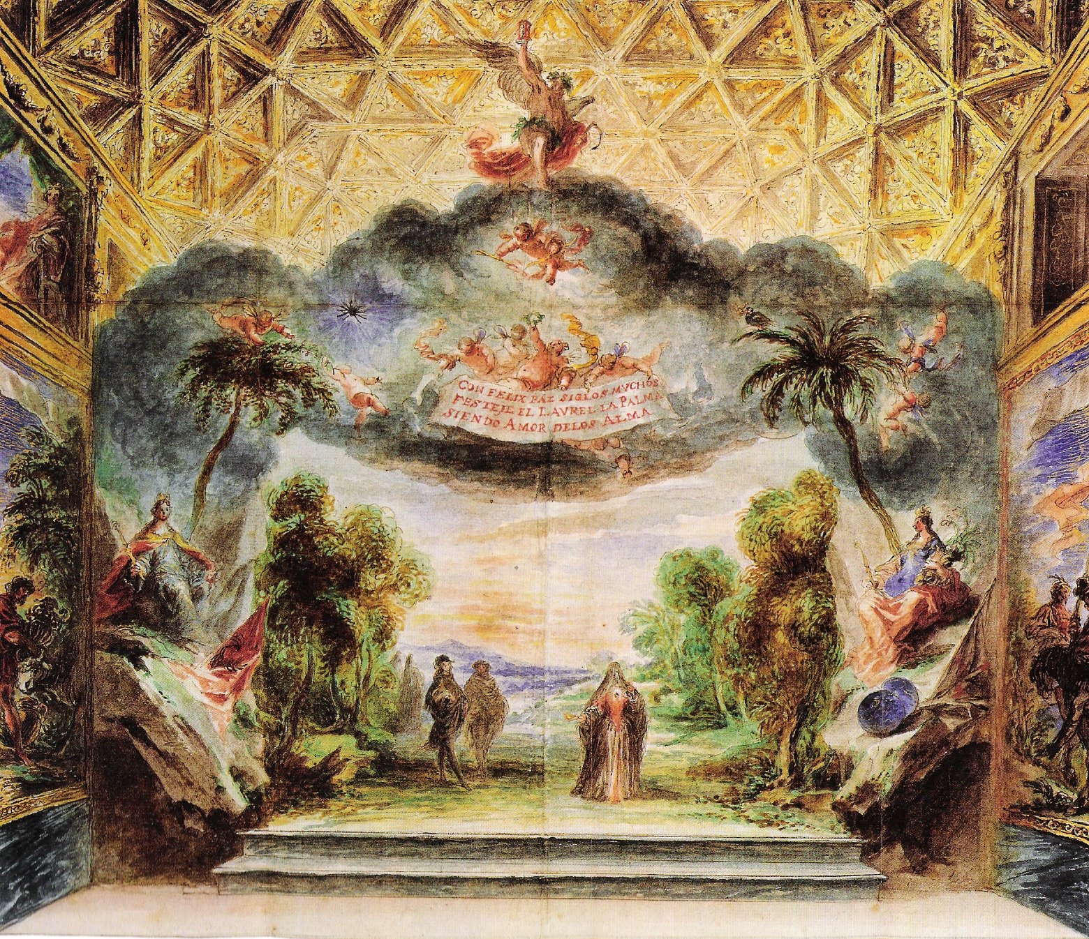 Fue en estos momentos cuando las fiestas y las manifestaciones efímeras alcanzaron todo su esplendor. Las representaciones de arte fingido, fueron para las monarquías europeas una forma de fortalecerse y de reflejar su poderío. Cualquier acontecimiento memorable necesitaba una pompa adecuada para que reflejara el poder de la monarquía: visitas, entradas, bautizos, bodas o victorias militares. No obstante, pese al esplendor que pretendían reflejar las fiestas y obras teatrales éstas eran producto de una sociedad decadente y con una economía en crisis. Estaban caracterizadas por la ostentación, no sólo para divertir al pueblo, sino también para distraer al monarca y su corte y olvidar por un momento las derrotas en el frente.