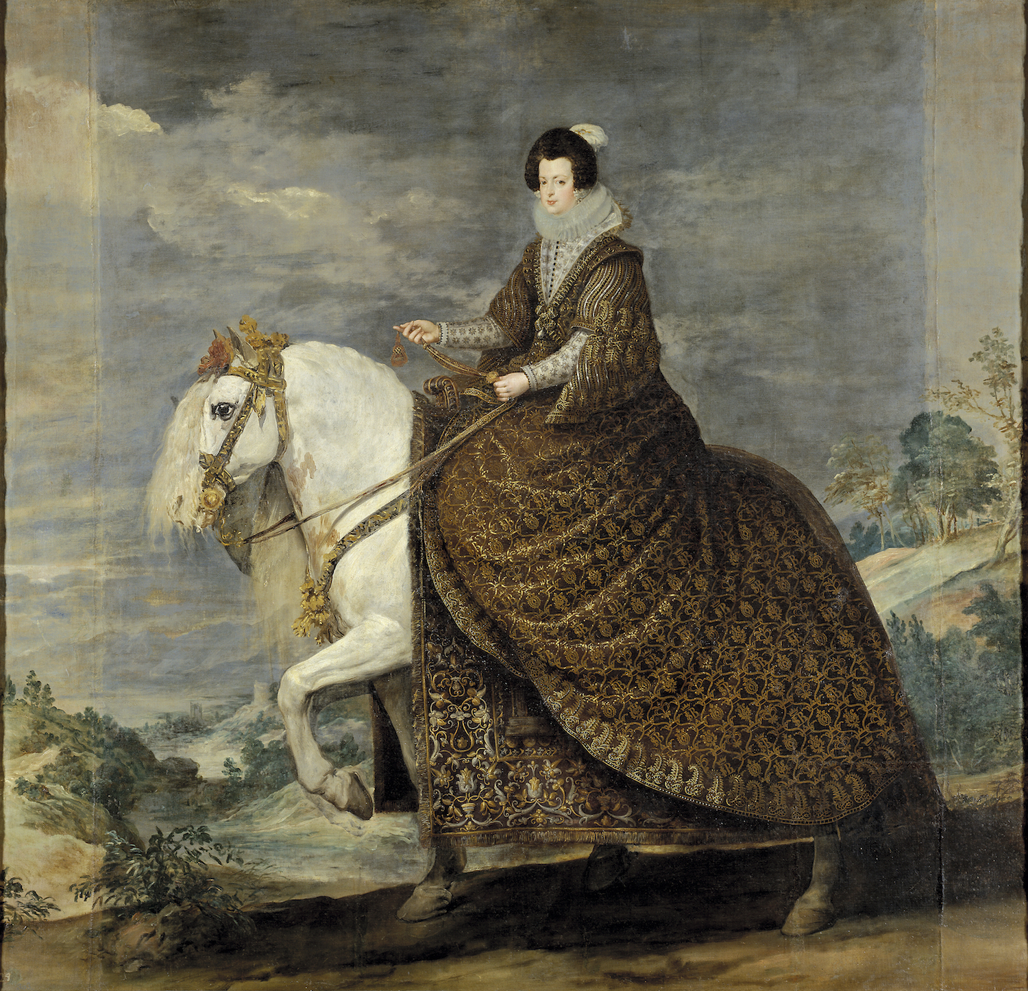 Los cinco retratos ecuestres fueron pintados por Velázquez, aunque es probable que los cuadros de Felipe III y Margarita de Austria contaran con la ayuda de Bartolomé González sobre todo en lo referente al vestuario. Hoy en día ambos lienzos, tras la restauración de éstos en el año 2012 (aquí), figuran sin las tiras que se les añadieron en el siglo XVIII. La serie estaba completada con los retratos de Felipe IV e Isabel de Borbón y de su hijo, el príncipe Baltasar Carlos. Se representaba de esta forma el pasado, presente y furturo de la monarquía hispánica.