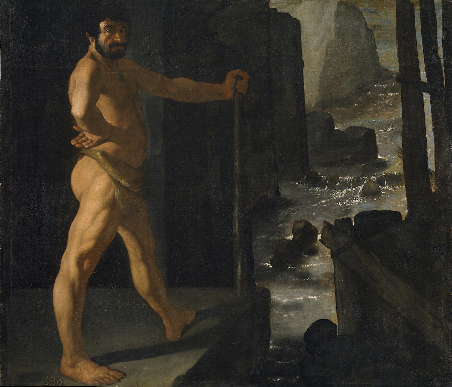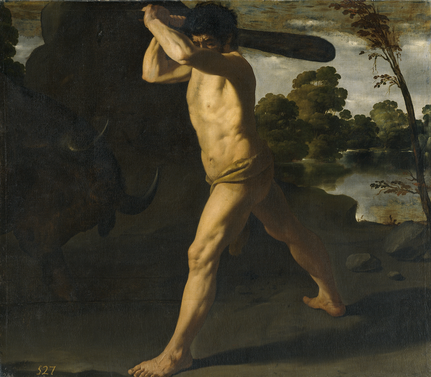 Los diez trabajos de Hércules iban a ser doce, tal y como cuenta la mitología, pero al decidir colocarse las historias sobre las ventanas y ser éstas tan sólo diez, se redujo el número de representaciones. Esta serie fue encargada a Francisco Zurbarán, pintor al que también se le encargó uno de los cuadros de batallas. A través de estos lienzos se pretendía simbolizar al rey como nuevo Hércules, como el héroe gracias al cual se conservaban el conglomerado de reinos que era el Imperio español.