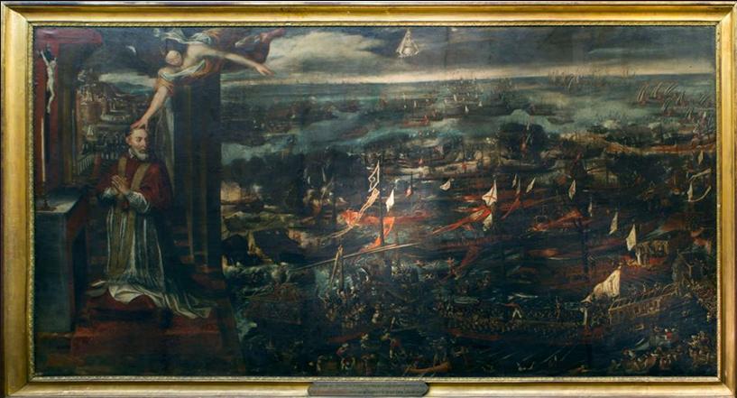 Finalmente, entre las numerosas pinturas que se exhiben en el museo, queremos destacar por varios motivos la correspondiente a la Revelación a San Pío v de la Victoria de la Santa Liga de Lepanto. Escogemos esta y no otra no sólo por su calidad técnica, o porque luzca convenientemente restaurada después de su intervención en 2012, sino porque queremos también hablar del carácter dinámico y ejemplar de este museo, que no dudó en mostrar al público el proceso de restauración de esta pintura. La intervención se tuvo que llevar a cabo en el propio museo, ya que su gran tamaño y el estado de conservación desaconsejaba el traslado, y esto fue aprovechado como una oportunidad para establecer en una de sus salas un espacio abierto al público donde se podía contemplar de cerca el trabajo de los restauradores y seguir el proceso de la puesta a punto de la obra. En una palabra chapó!! Ojalá esta iniciativa cundiera entre las instituciones.