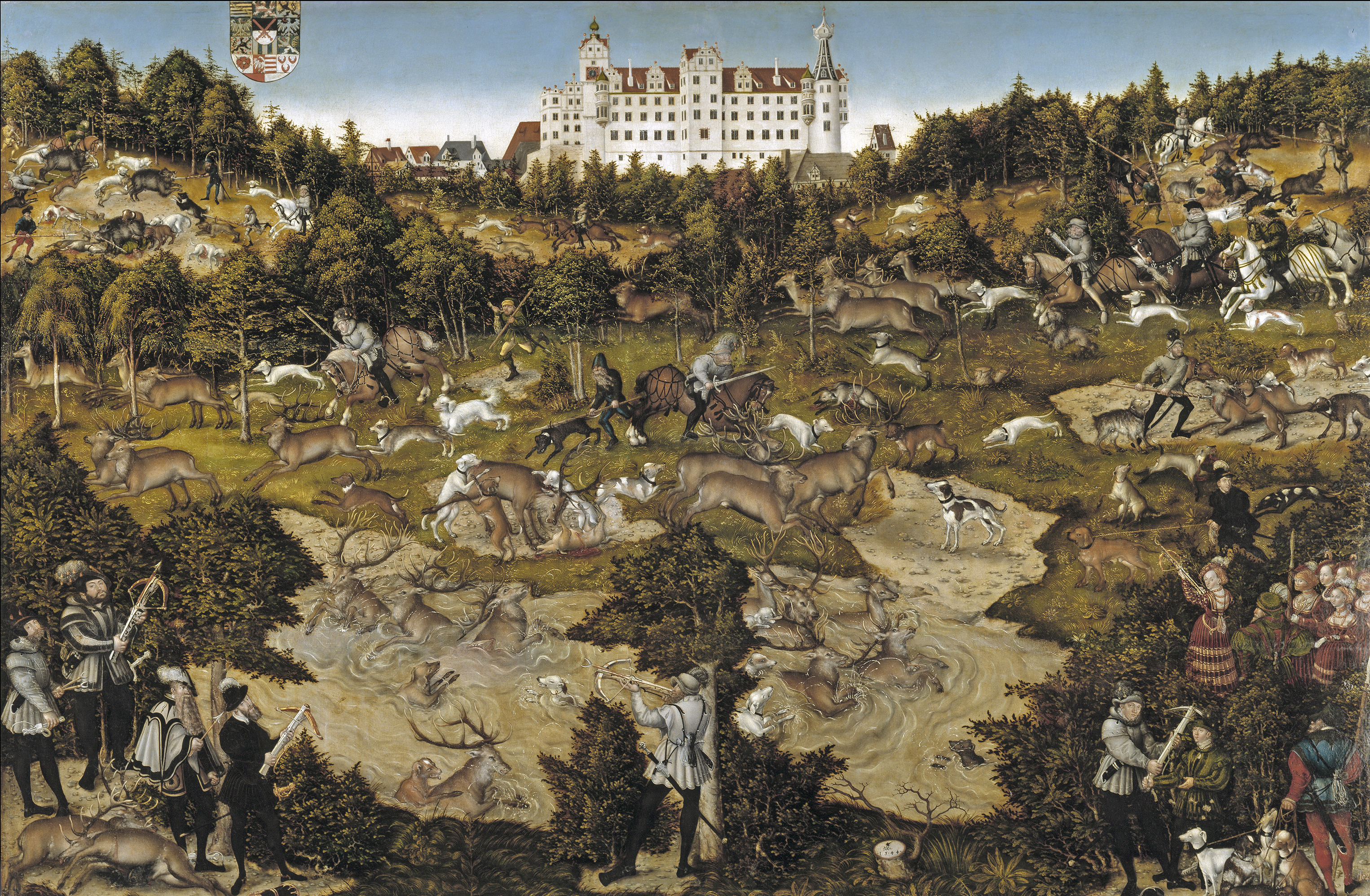 Finalmente, en las fincas de mayor tamaño había un tercer elemento que componía el jardín. En aquellas casas cuya finalidad era la cinegética había zonas de bosques. Éstos se dejaban salvajes aunque delimitados con una tapia para evitar que los cazadores furtivos o las gentes de los alrededores pudieran beneficiarse de la caza del lugar. Bien es sabido el gusto que los monarcas de la dinastía de los austrias tuvieron por la caza y la importancia que a esta actividad tuvo en sus vidas. Un buen reflejo de ello es el cuadro de Lucas Cranach el viejo, Cacería en honor a Carlos V en el Palacio de Torgau o La Cacería del tabladillo en Aranjuez de Martínez del Mazo.