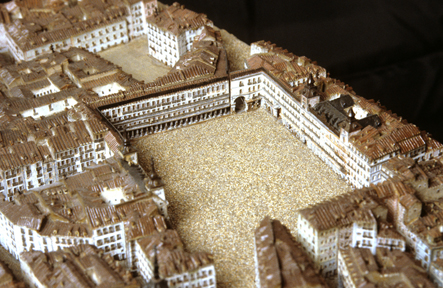 El Museo de Historia de Madrid se encuentra ubicado en el recientemente restaurado Real Hospicio de San Fernando, entre las calles Fuencarral, Barceló y Beneficencia, en pleno barrio de Malasaña. El espectacular edificio con una brutal y cargadísima, portada creada por Pedro de Ribera se presenta restaurado. Con un interior que en principio puede parecer, sobretodo el gran patio cubierto, desproporcionado, pero al mismo tiempo ideal para actos y exposiciones de grandes proporciones. Ya en las salas la madera, que envuelve el visitante por los pies y cabeza, nos sitúan en una dimensión mucho más humana y tranquila para el disfrute de las colecciones que acoge el museo.