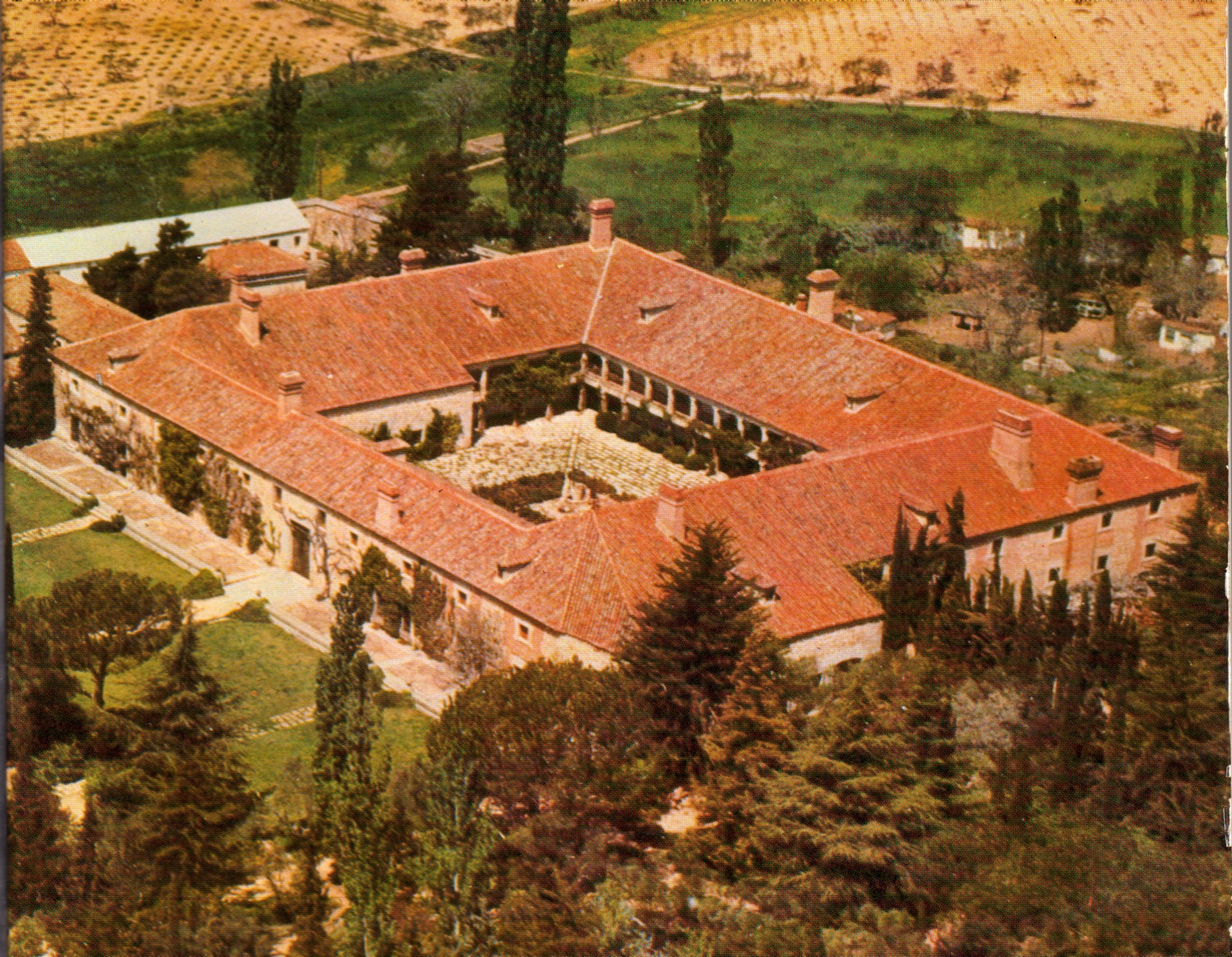 El monumento establecía así un diálogo directo con la naturaleza que le circundaba, la cual era toda propiedad del monasterio, ya que desde el primer momento el rey lo dotó con una serie de fincas rústicas como: las dehesas de la Herrería y la Fresneda, así como Campillo y Monesterio, o la más lejana de El Quexigal (ver post dedicados al entorno natural de El Escorial aquí y aquí). Estas fincas no sólo tenían un papel paisajístico, sino que también estaban destinadas a su explotación agrícola, ganadera y de recreo, ya que los monarcas disfrutaban de la caza en ellas. Así amplias extensiones de terrenos, hasta entonces baldíos y agrestes se transformaron en agradables parajes con arboledas, jardines, estanques, fuentes…