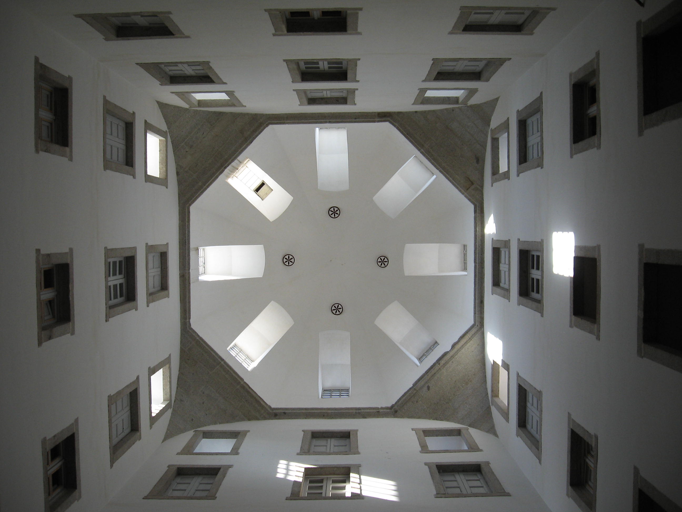 Colegio y Seminario: Situados en la zona norte, en un principio fueron ideados como área de servicios, función que sólo permanecería en uno de sus cuatro patios. El seminario y el colegio disponían de cocinas, refectorio, necesarias y dormitorios, añadiéndose las correspondientes aulas para las lecciones y un pasadero utilizado como lugar de recreo.