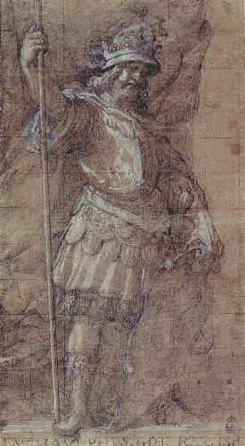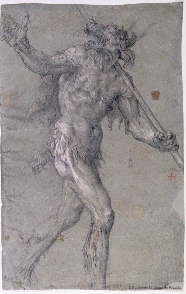 Vicente Carducho: Rey con las armas de Portugal, 1621. Lápiz negro, pluma y aguada de tinta parda sobre papel verjurado, 373 x 130 mm. Madrid, Biblioteca Nacional de España, DIB/13/1/50.