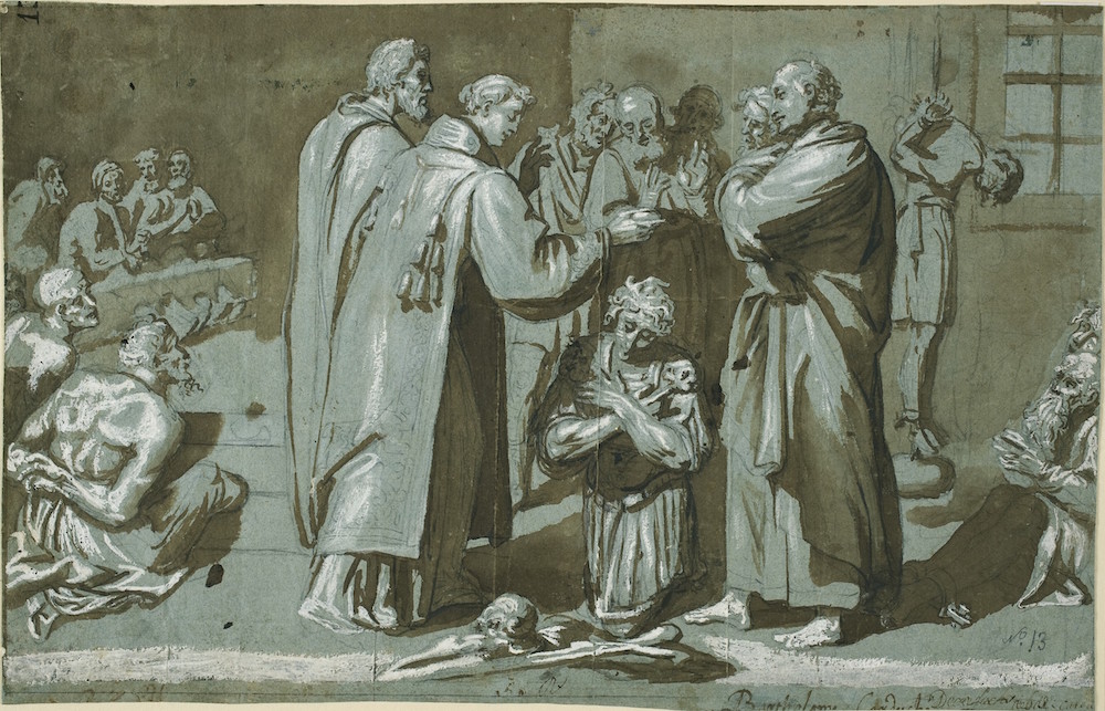 Vicente Carducho: San Agustín de Hipona, ca. 1620-1634. Lápiz negro, aguada de tinta parda y realces de albayalde sobre papel verjurado, 253 x 108 mm. Madrid, Museo Nacional del Prado, D-2108.