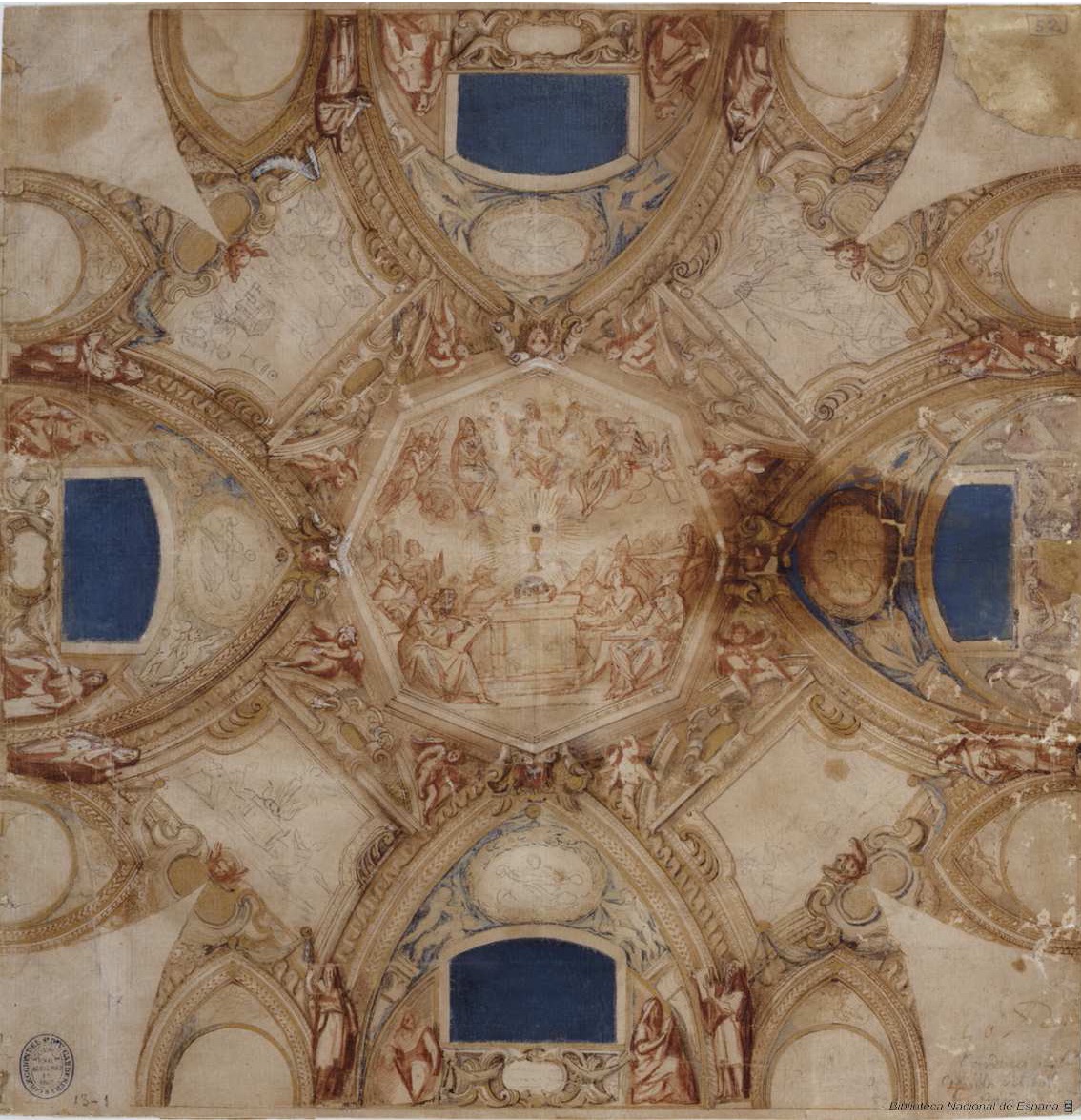En 1604 arde buena parte del palacio de El Pardo. Inmediatamente después Felipe III ordena su reconstrucción y emprende durante los años siguientes una amplia campaña de decoración mural del edificio en el que trabajarán los principales artistas de la corte. En 1607 contrata la pintura de la bóveda de la capilla del cuarto del rey donde representará El triunfo de la Eucaristía, para la cual se conserva el espléndido dibujo de presentación de la Biblioteca Nacional de Madrid. Un año más tarde y a consecuencia del fallecimiento de su hermano Bartolomé, se hará cargo de la decoración de la Galería del Mediodía del aposento regio. Bartolomé Carducho la había contratado en 1607 con la intención de pintar los principales acontecimientos históricos del emperador Carlos V. Las obras no se reanudarán hasta 1610, una vez finalizada por Vicente Carducho la decoración de la capilla y será entonces cuando se modifique el programa iconográfico de la galería, que pasará a albergar la Historia de Aquiles. Perdidas las pinturas, afortunadamente hemos conservado un buen número de dibujos preparatorios, todos ellos presentes en la muestra.