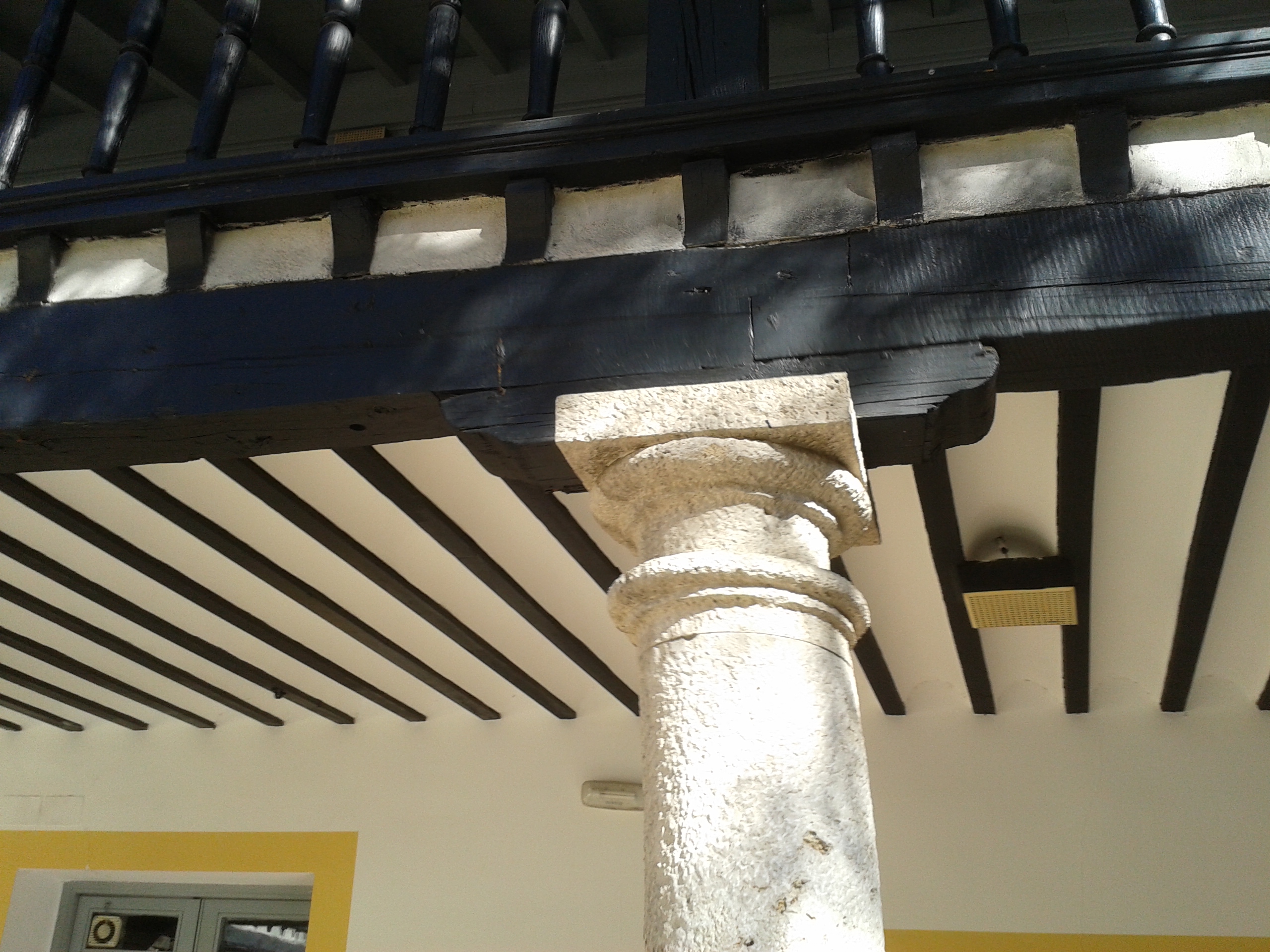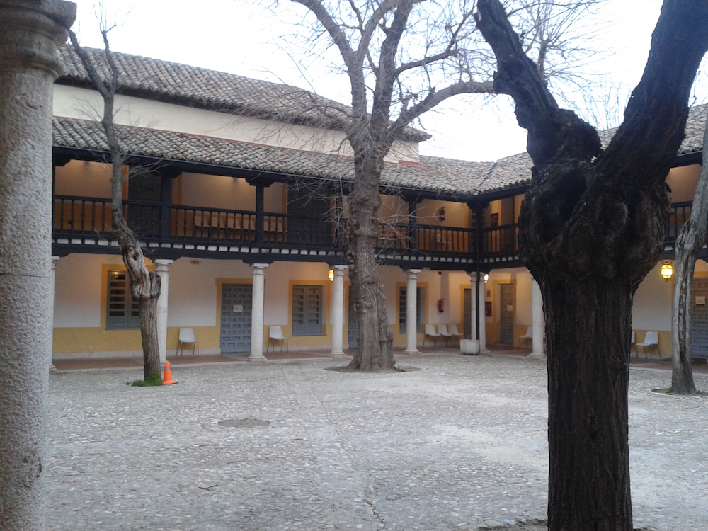 La construcción no se hizo siguiendo un planteamiento único y director, sino que se fue modificando según las necesidades y los momentos. Consta de un patio irregular, aunque de aspecto rectangular, donde las crujías están realizadas en momentos diferentes y a alturas también distintas. El patio sigue la típica disposición de patio castellano del XVI, con columnas pétreas de orden toscano, realizadas en caliza de Colmenar, y una segunda planta con pies derechos y zapatas en madera.