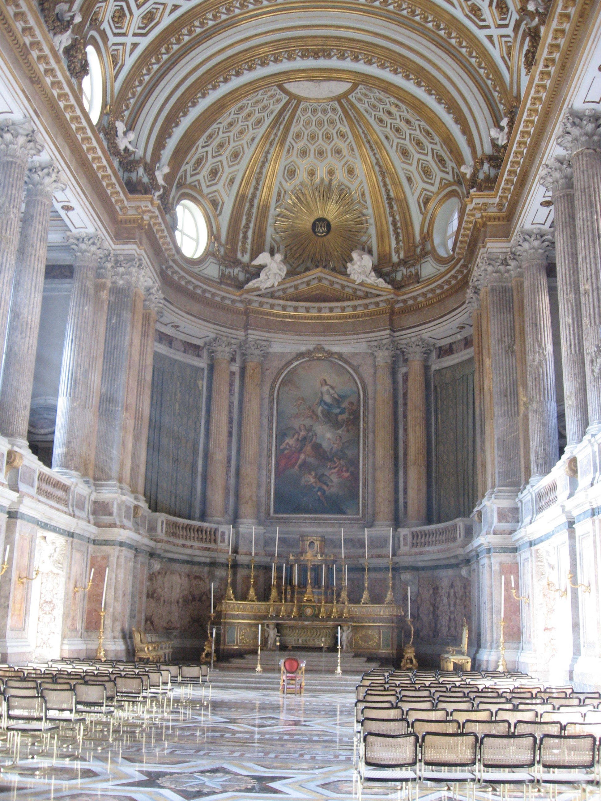 En la ampliación por el lado Norte, se retoma el sistema celular de Juvarra, con tres nuevos patios, dos de ellos flanquean la nueva capilla, que se proyecta hacia el Norte desde la capilla de Sacchetti. Para acceder al nivel de la capilla, por el gran desnivel que por esa parte de Palacio hay, Sabatini se ve obligado a proyectar tres galerías superpuestas, la inmediatamente inferior a la capilla la destina a museo de escultura. La nueva capilla resulta así compuesta por un gran nartex cupulado (antigua capilla de Sacchetti), seguido de una nave larga acabada en ábside, que se encaja en el ámbito cupulado por un coro alto, formula que recuerda a la capilla de Caserta y en última instancia al modelo de ambas: la capilla de Versalles. Para esta obra se empezaron a echar cimientos, pero se abandonó la obra, y en el mismo sitio hizo Sabatini las Reales Caballerizas.