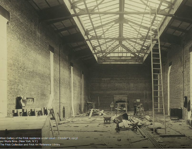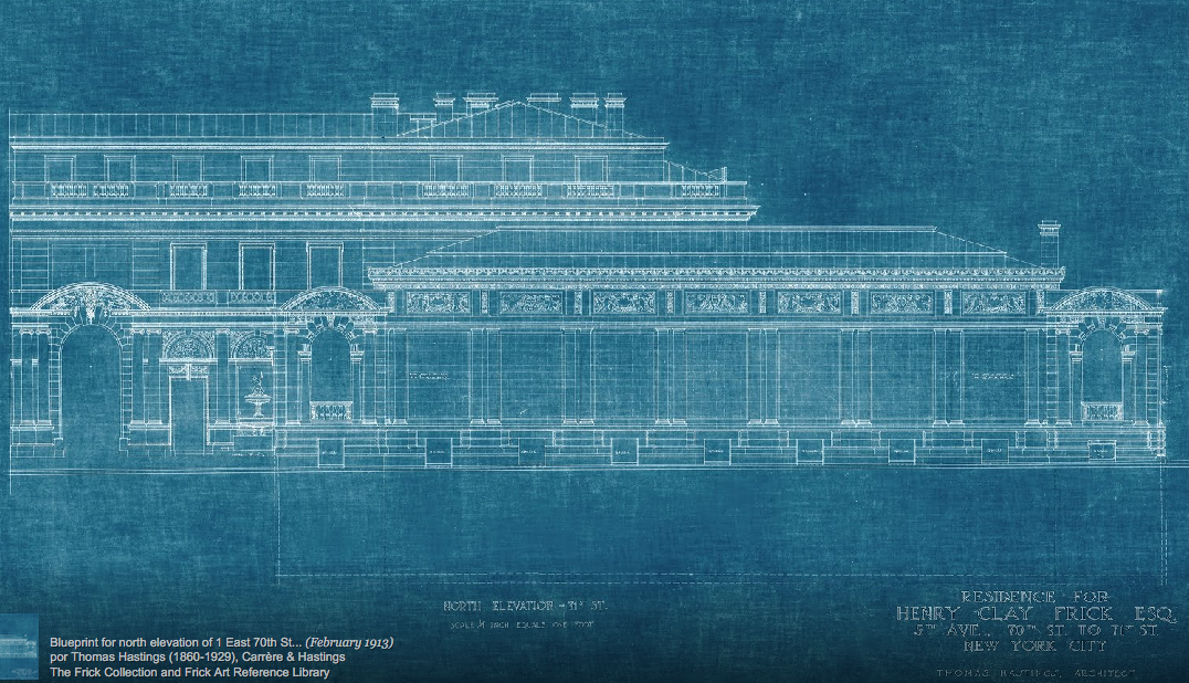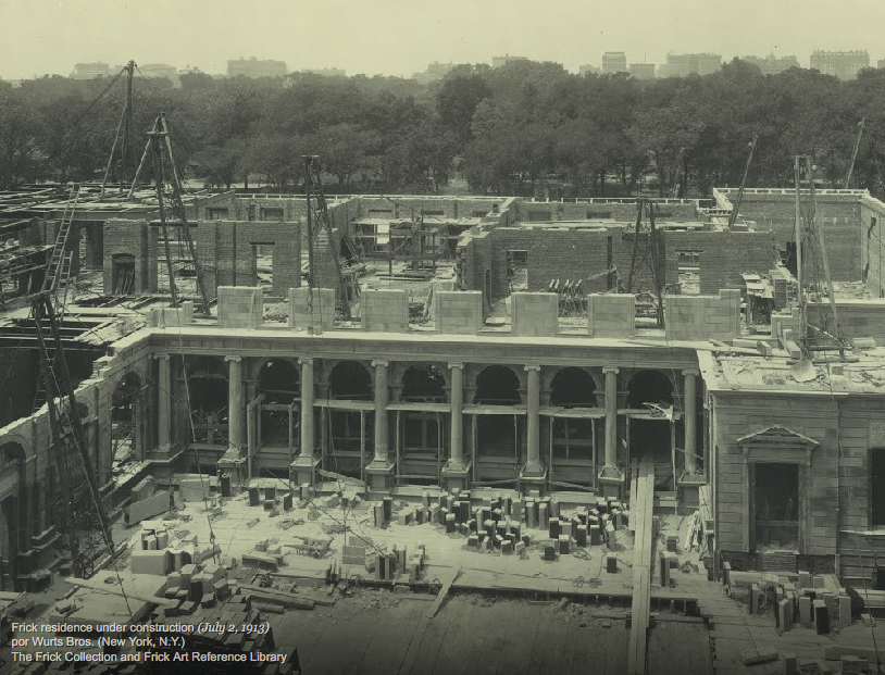 La mansión donde se encuentra la Frick fue construída por Henry Clay Frick, un existoso industrial americano, entre 1913 y 1914, y encargada a la firma de arquitectos Carrère y Hastings. Su emplazamiento, no podía ser más único, ya que se encuentra en la 5ª Avenida entre las calles 70 y 71, justamente enfrente de Central Park y a escasas manzanas del Metropolitan Museum. La idea de Henry Clay era crear una casa cómoda, que no resultara demasiado ostentosa y que diera cobijo perfecto a su colección de pintura, escultura y artes decorativas.