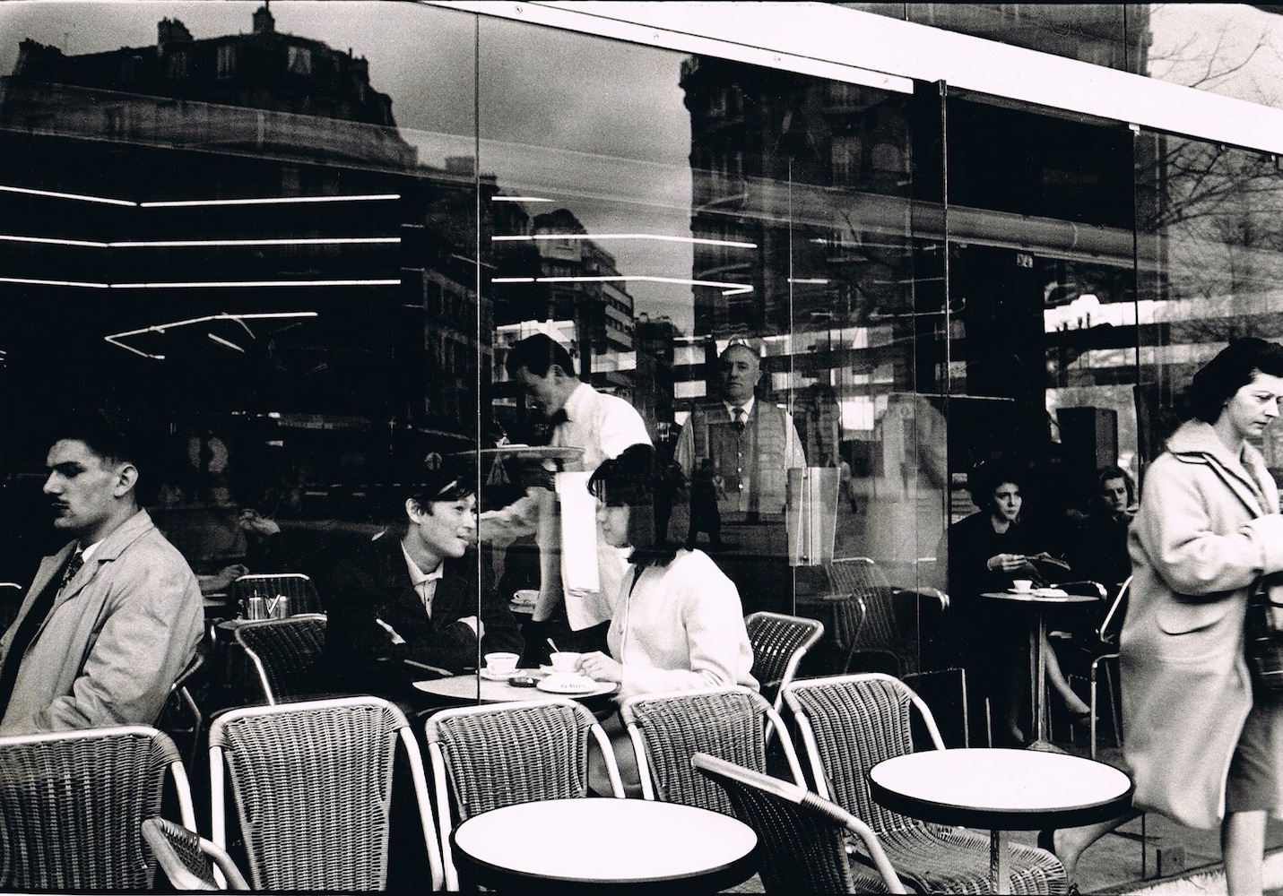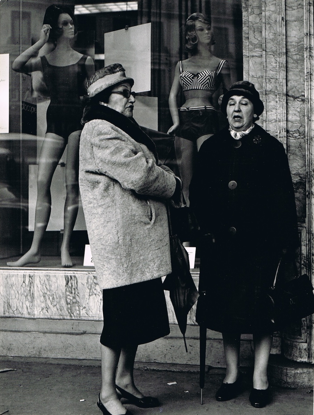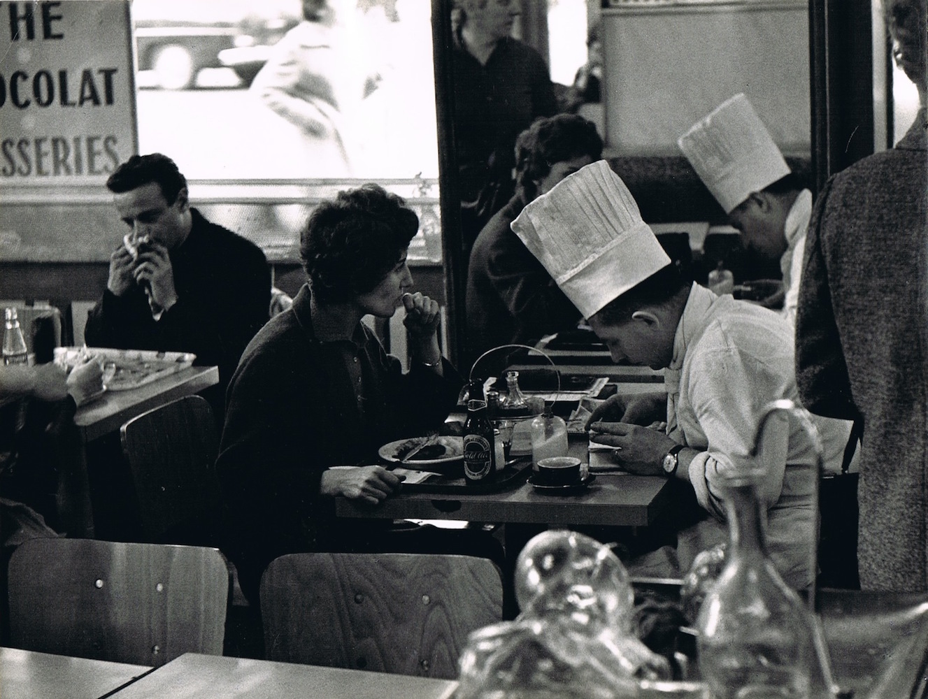 Pero también en sus gentes que desarrollaban sus quehaceres o trabajos cotidianos: floristas, señoras dialogando en la calle, personas comiendo en los cafés o arreglándose en el baño en unos grandes almacenes. Su objetivo se manifiesta tan atento y juguetón como sus Niños del Louvre o los callejeros de Juegos.
