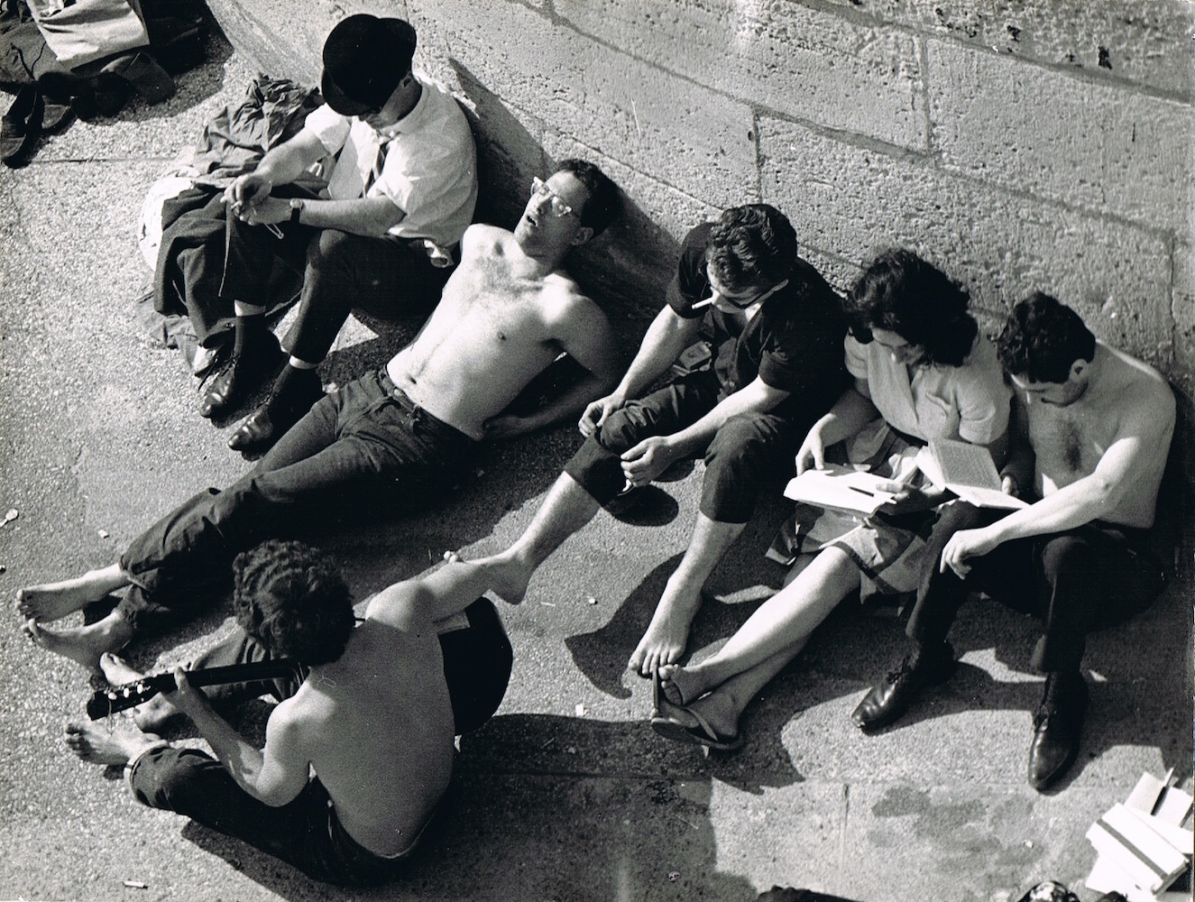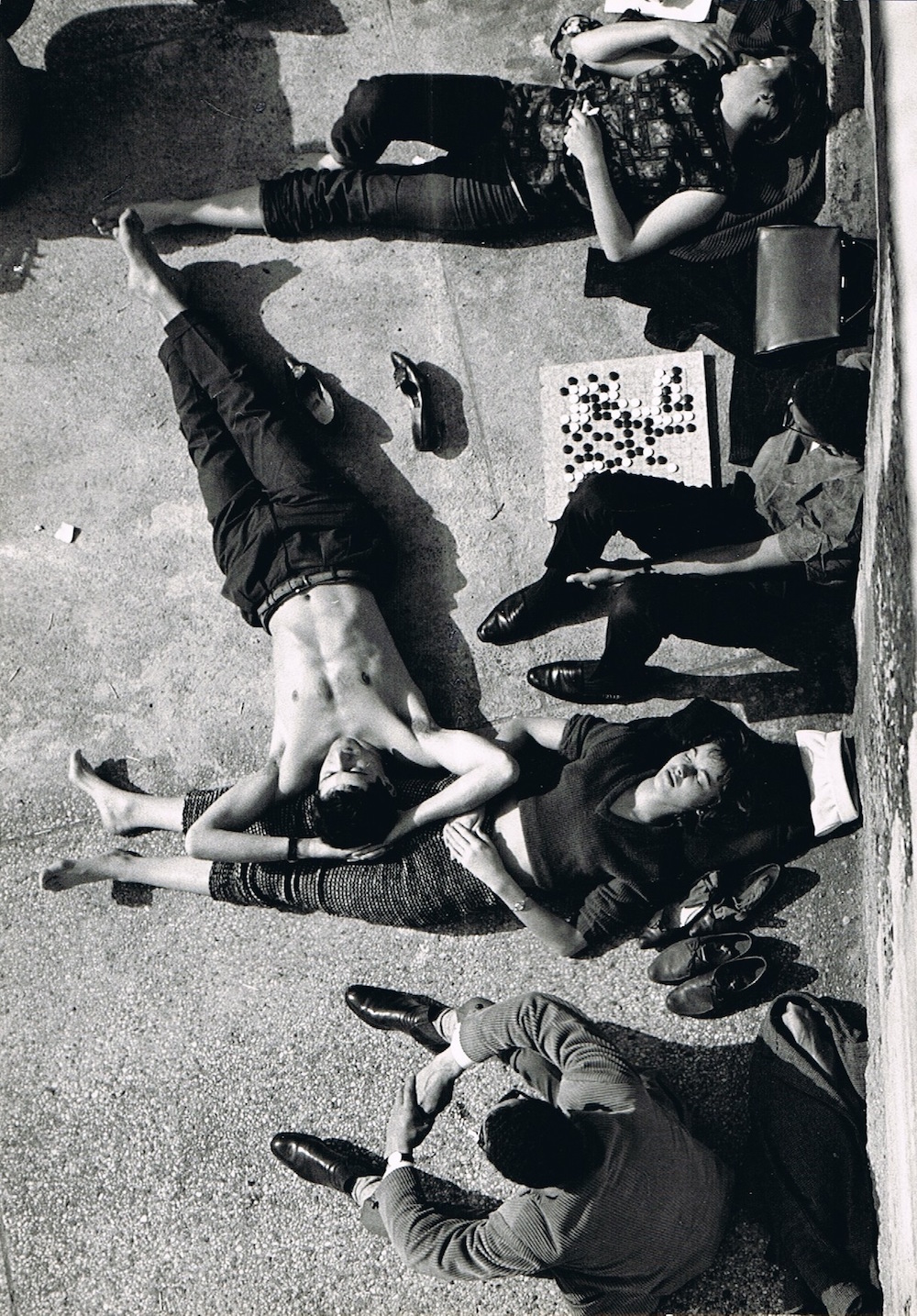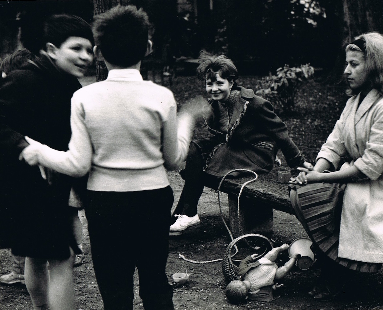 Pero también en sus gentes que desarrollaban sus quehaceres o trabajos cotidianos: floristas, señoras dialogando en la calle, personas comiendo en los cafés o arreglándose en el baño en unos grandes almacenes. Su objetivo se manifiesta tan atento y juguetón como sus Niños del Louvre o los callejeros de Juegos.