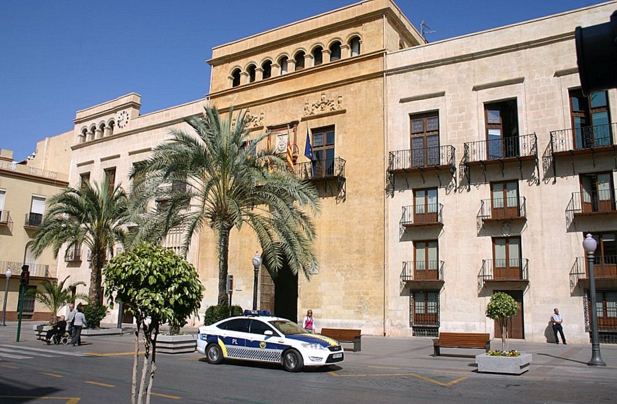 Foto actual del Ayuntamiento de Elche. Foto Wikimedia Commons.