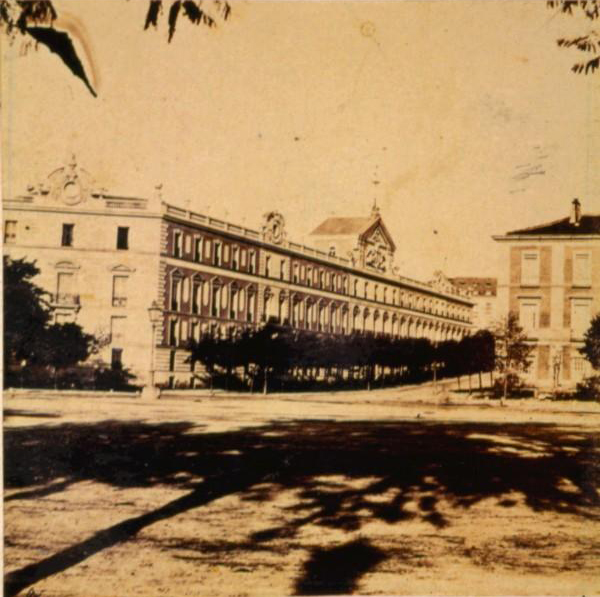 J. Laurent: Vista de la Carrera de San Jerónimo con el Palacio de Medinaceli (actual ubicación del Palace) a la izquierda. Fondo IPHE.