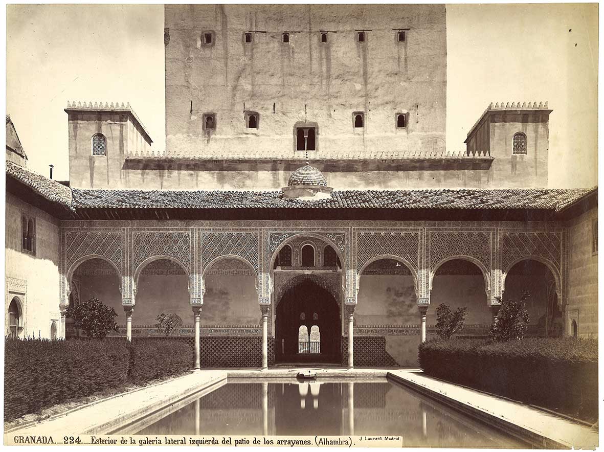 J. Laurent: Vista del patio de los Arrayanes de la Alhambra de Granada. Fondo IPHE.