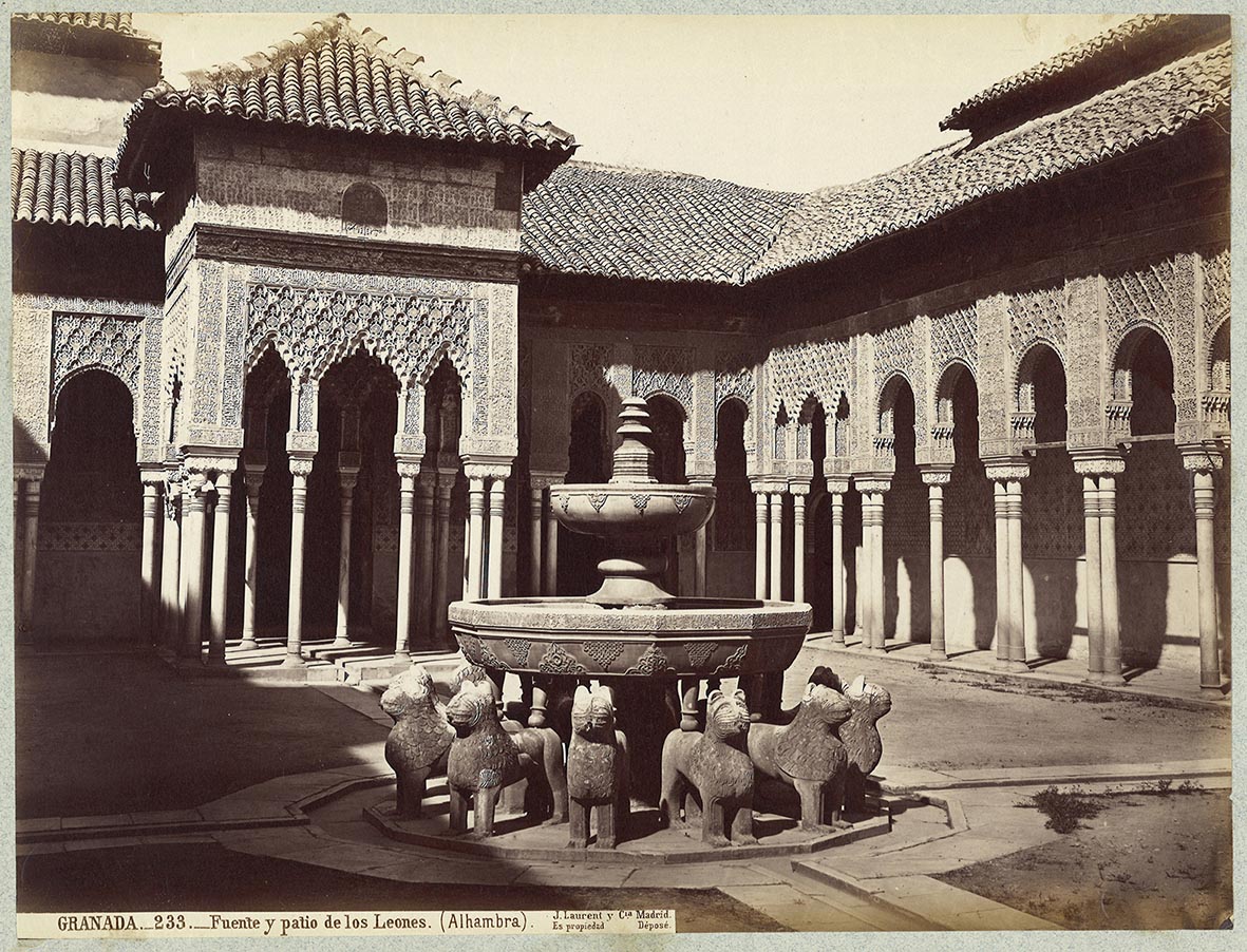 J. Laurent: Vista del patio de los Leones de la Alhambra de Granada. Fondo IPHE.