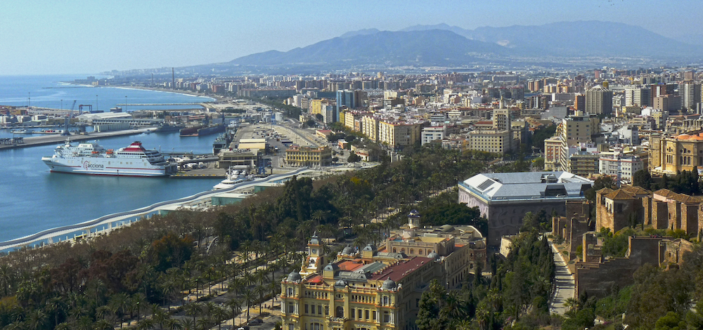 Vista actual de Málaga desde el castillo. Wikimedia Commons.