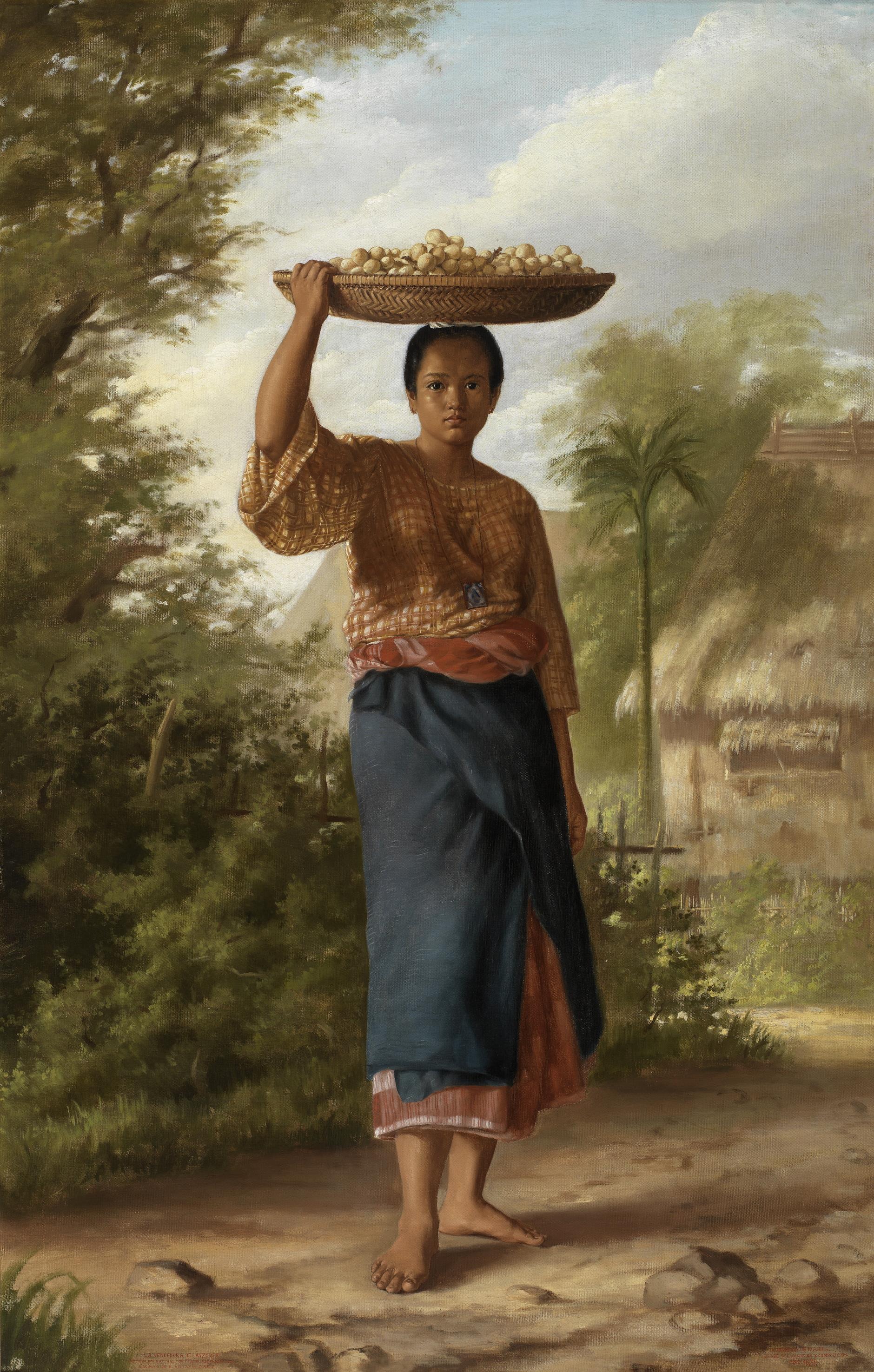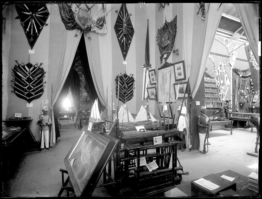 Uno de los hitos más importantes para el conocimiento y promoción de las islas del pacífico en la Península fue la Exposición General de las Islas Filipinas que se celebró en el Parque del Retiro en 1887. Esta exposición, como tantas otras, tenía un fuerte componente político. Para esas fechas se había desarrollado en Filipinas todo un sentimiento anticolonialista que buscaba o esperaba de España un cambio en su política para con el archipiélago. No obstante, desde la metrópoli se quería dar una imagen completamente diferente, destacándose en la exposición los elementos más primitivos o salvajes para acentuar así la necesidad de protección. Es por ello que se hurtó de la contemplación del público madrileño la obra de los mejores pintores de la escuela, que por otro lado triunfaban en las Exposiciones Nacionales de Bellas Artes, y se utilizó obras de pintores menores y de temática más exótica: tipos humanos y paisajes. Todo ello daba a la escuela filipina un aire infantil que justificaba así la visión proteccionista de la metrópoli. La prensa madrileña del momento no hará sino acrecentar estas ideas por todo el anecdotario que causó la exposición, ya que también se expusieron indígenas de las islas, recreando sus modos de vida, sus atuendos y sus viviendas. El estado de semidesnudez y su condición religiosa no católica dieron para un río de tinta y no pocos titulares llamativos haciéndose eco de la obsesión de la Reina Regente, María Cristina de Habsburgo-Lorena, de dar cristiano bautismo a los indígenas que automáticamente recibían todos el nombre de Cristino.