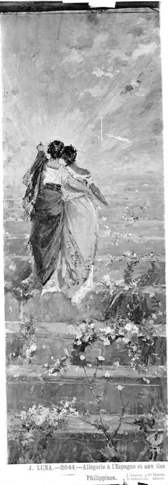 El ministerio de Ultramar, el mismo que había organizado la Exposición General de Filipinas y que creará a partir de aquí el llamado Museo de Ultramar, situado en el palacio de Velázquez del Retiro, encargará a Luna una pintura alegórica: España llevando a la gloria a Filipinas. De la obra, firmada en 1885, conservamos un boceto y el cuadro acabado. Éste forma parte de las colecciones del Museo del Prado pero se encuentra depositado en el Ayuntamiento de Cádiz. El óleo es un clarísimo ejemplo de la capacidad técnica y compositiva de Luna.