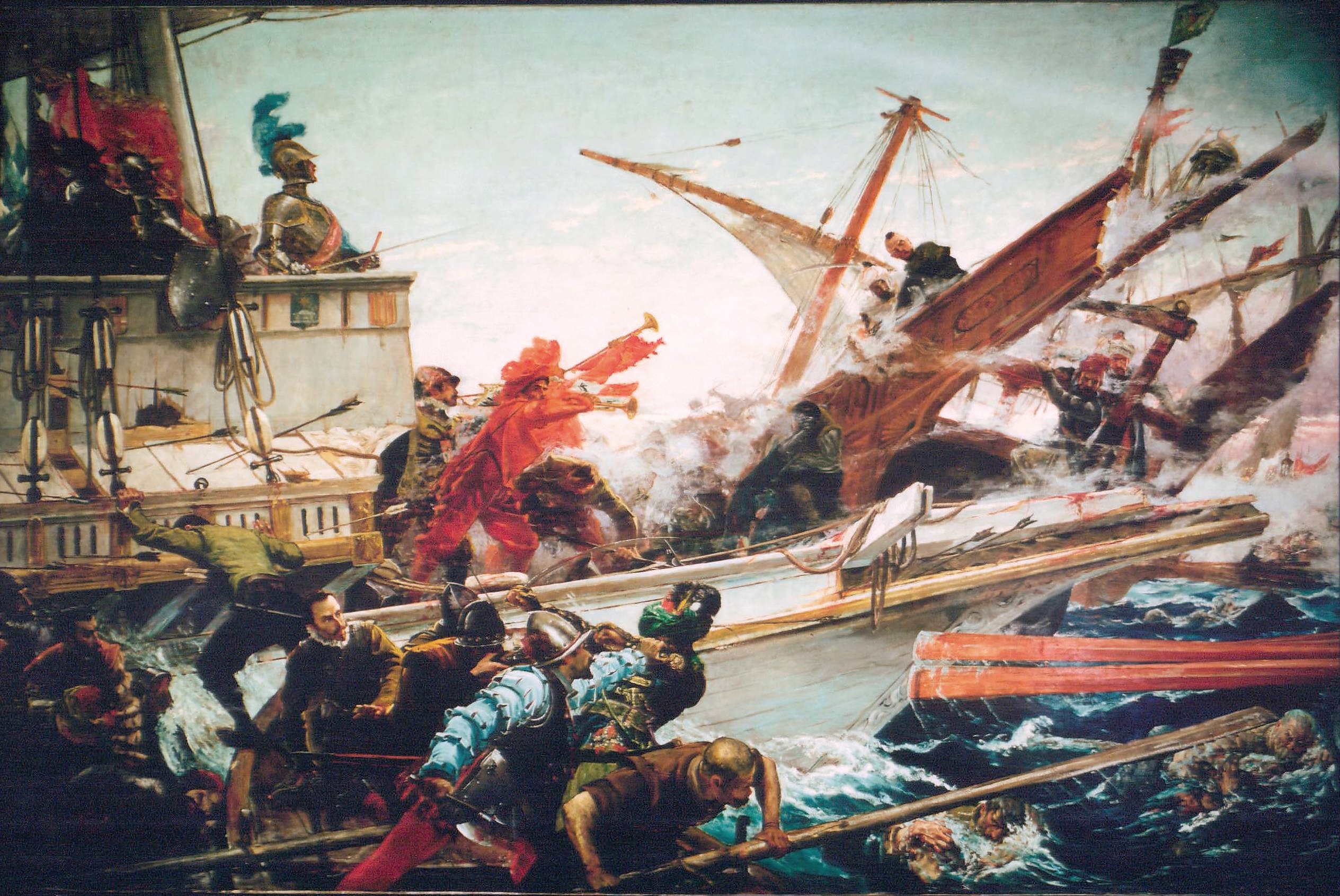 En 1887 el gobierno le encarga para el Senado un lienzo titulado La batalla de Lepanto. Con una composición muy novedosa e influenciada por la fotografía, en la que lo anecdótico supera al lenguaje triunfalista del género histórico. El cuadro actualmente se puede ver en un pasillo de la institución.