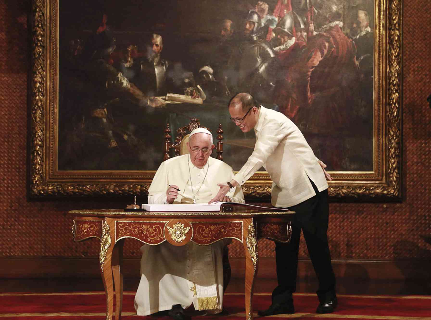 Ese arrinconamiento en un pasillo en el Senado español se contrapone con el papel icónico que han adquirido sus obras en Filipinas, donde uno de sus cuadros de historia El pacto de sangre de 1885, preside una de las salas más importantes del Palacio Malacañán de Manila, residencia oficial del Presidente de la República de Filipinas, donde son recibidos los más altos dignatarios que visitan aquél país.