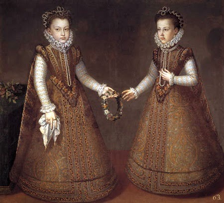 En los primeros retratos que poseemos de la infanta ésta aparece junto a su hermana pequeña, Catalina Micaela, nacida tan sólo un año después que ella en octubre de 1567. Sánchez Coello plasmará en numerosas ocasiones a las dos infantas hecho que constataba el especial afecto que les profesaba el rey, que encargó muchos de estos retratos en distintas etapas de la vida de sus hijas.