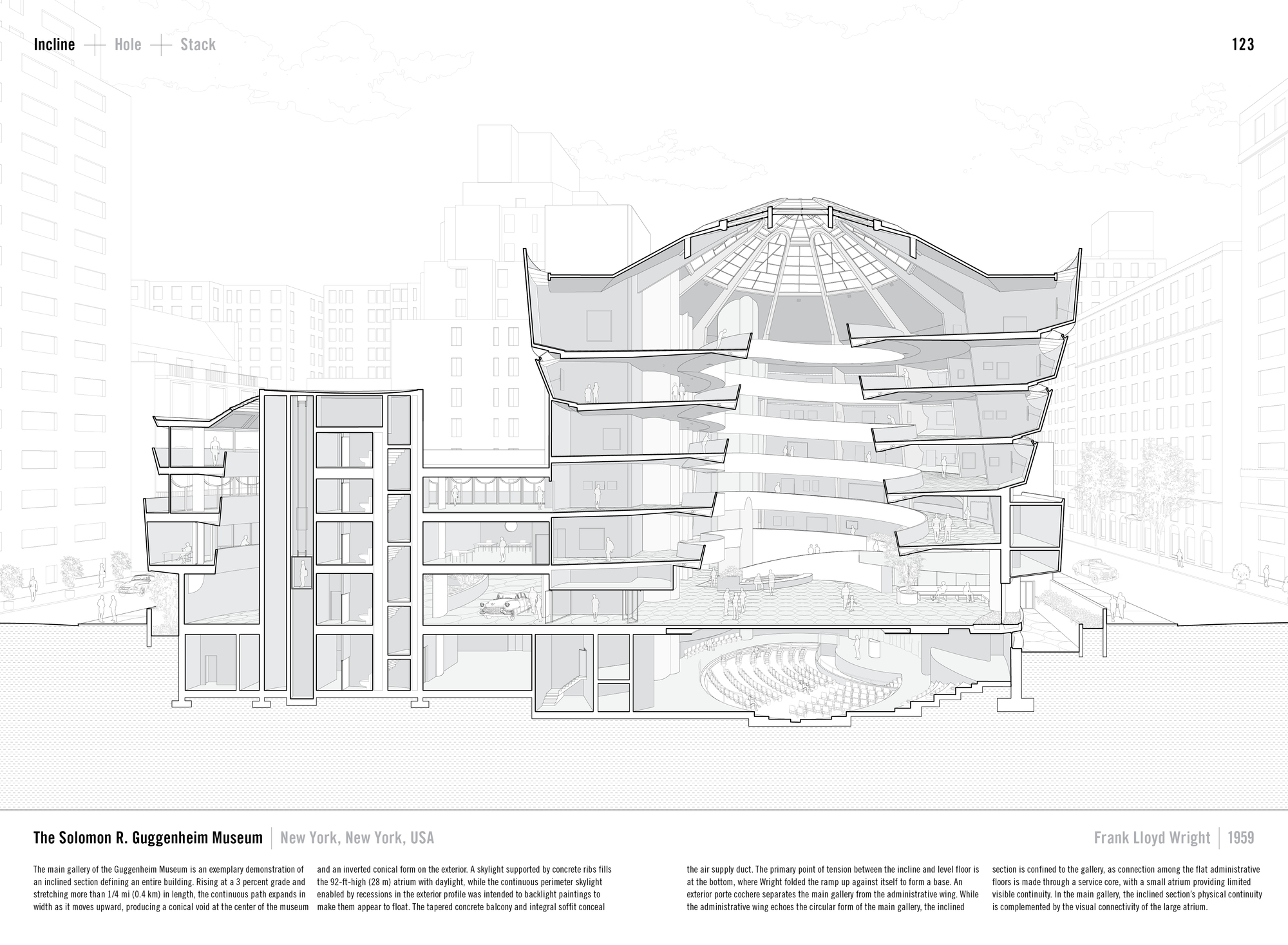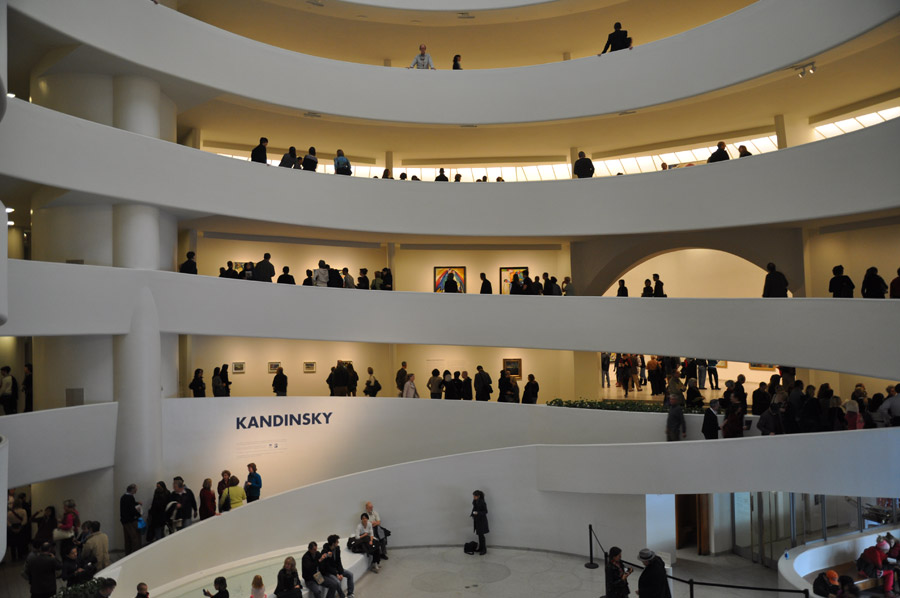 Sin embargo, mientras que hay casos en los que se han seguido las recomendaciones establecidas por la Conferencia de Museos del 34, lo cierto es que la una gran parte de los museos no las tuvieron en cuenta. Ese es el caso, por ejemplo, del emblemático Guggenheim de Nueva York. Uno de los edificios más bellos de la arquitectura del siglo XX, indudablemente, pero con el que Frank Lloyd Wright creó un edificio insignia en el que el acomodo de las colecciones artísticas no era el objetivo primordial. De hecho es sumamente compleja la ubicación de las pinturas en los muros curvos y en rampa que lo dan forma.