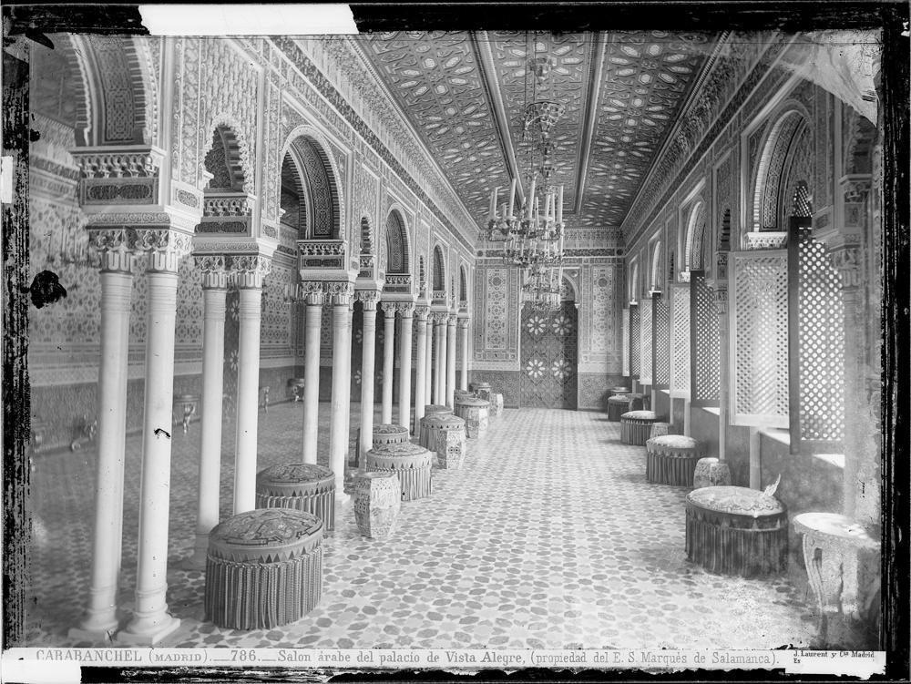 Como consecuencia directa de estos modelos surgirá la galería árabe que se hará en el Palacio de Vista Alegre para el Marqués de Salamanca. Concebida como una finca de recreo en el camino a los Carabancheles, Vista Alegre era propiedad de Agustín Muñoz, duque de Riánsares, el esposo morganático de la reina regente María Cristina de Borbón. Tras su obligado exilio en 1840, la finca pasará a manos de Salamanca, uno de los hombres más importantes del Madrid de Isabel II, entorno a 1844, siendo Narciso Pascual y Colomer el arquitecto encargado de terminarla. La galería, conocida por fotografías antiguas, estaba inspirada directamente en los ejemplos granadinos.