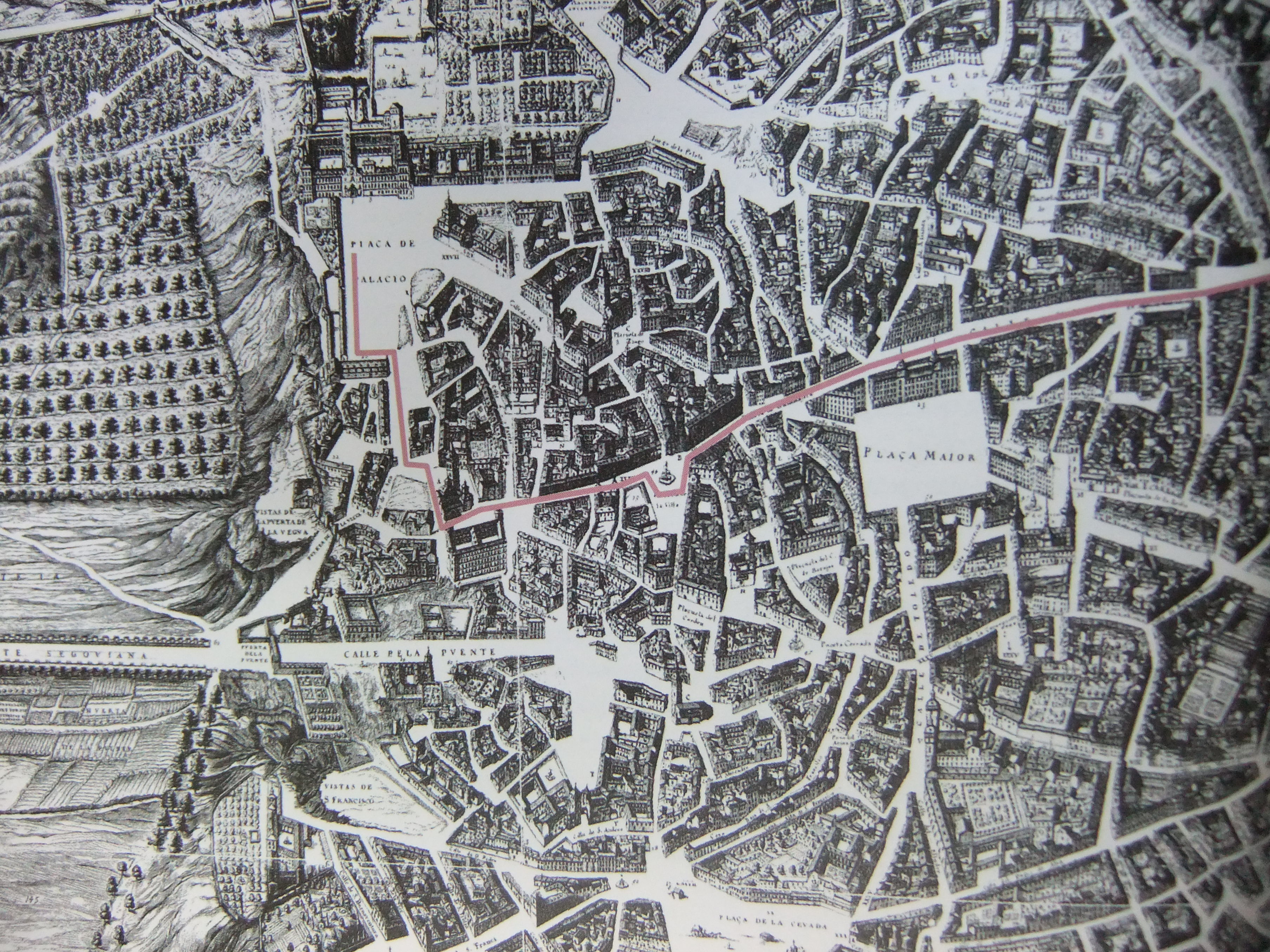 Plaza del Alcázar de Madrid según la planimetría de Pedro de Texeira.