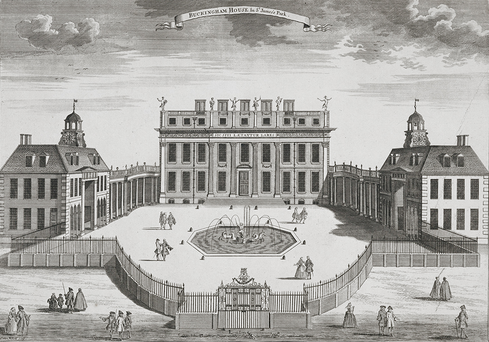 En el siglo XVIII la fuente será trasladada a Buckingham House, el petit hôtel que mandó construir John Sheffield (1648-1721), duque de Buckingham, a las afueras de Londres, núcleo del actual Palacio de Buckingham, donde se colocará en una galería interior junto a las escaleras. El Palacio de Buckingham fue adquirido por Jorge III (1738-1820) como palacio en 1762, y en algún momento después de esta fecha el grupo fue regalado por el rey a Thomas Worsley (1710-1778), topógrafo general de las Obras de Su Majestad y miembro del Parlamento que lo colocó en su palacio neopaladiano de Hovingham Hall, en el condado de York, donde se situará en un vestíbulo con columnas. Aparece citado en el inventario a la muerte de Worsley en 1778: