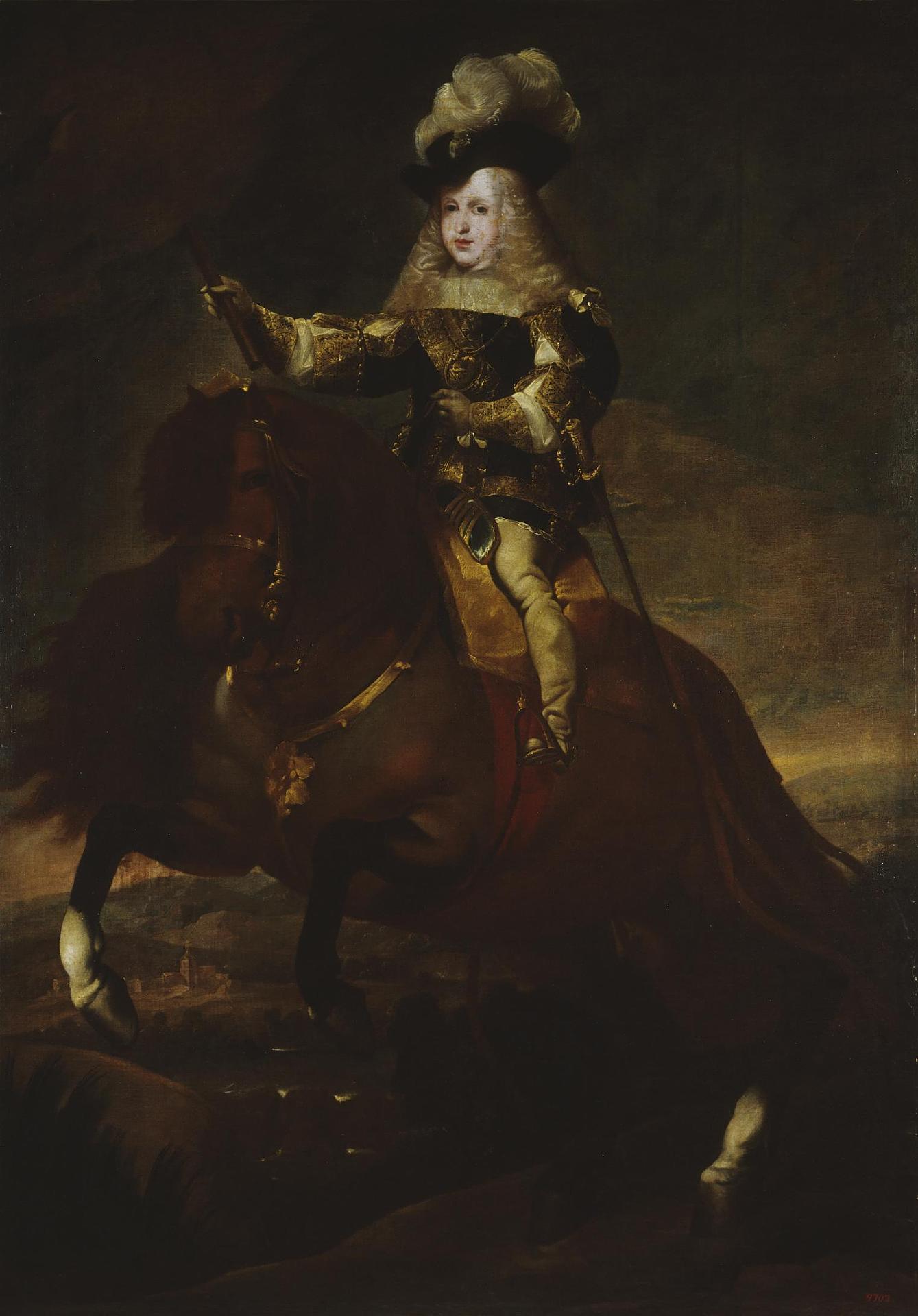 De ningún soberano antes ni de ninguno después se conservan tanto retratos ecuestres como de Carlos II, sobre todo en su etapa de niñez. Por tanto, seguramente, fue del que más se realizaron, demostrando el poder propagandística con el que se utilizó el arte del retrato para apuntalar la frágil naturaleza de un niño enfermo. En definitiva, resulta paradójico que la formula más extendida para representar al rey niño Carlos II fuera montando a caballo cuando ni tan siquiera podía gobernar sus propias piernas.