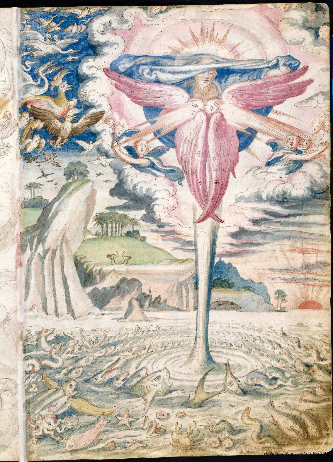 Francisco de Holanda: Creación de los animales. De Aetatibus Mundi Imagines. Madrid. BNE.