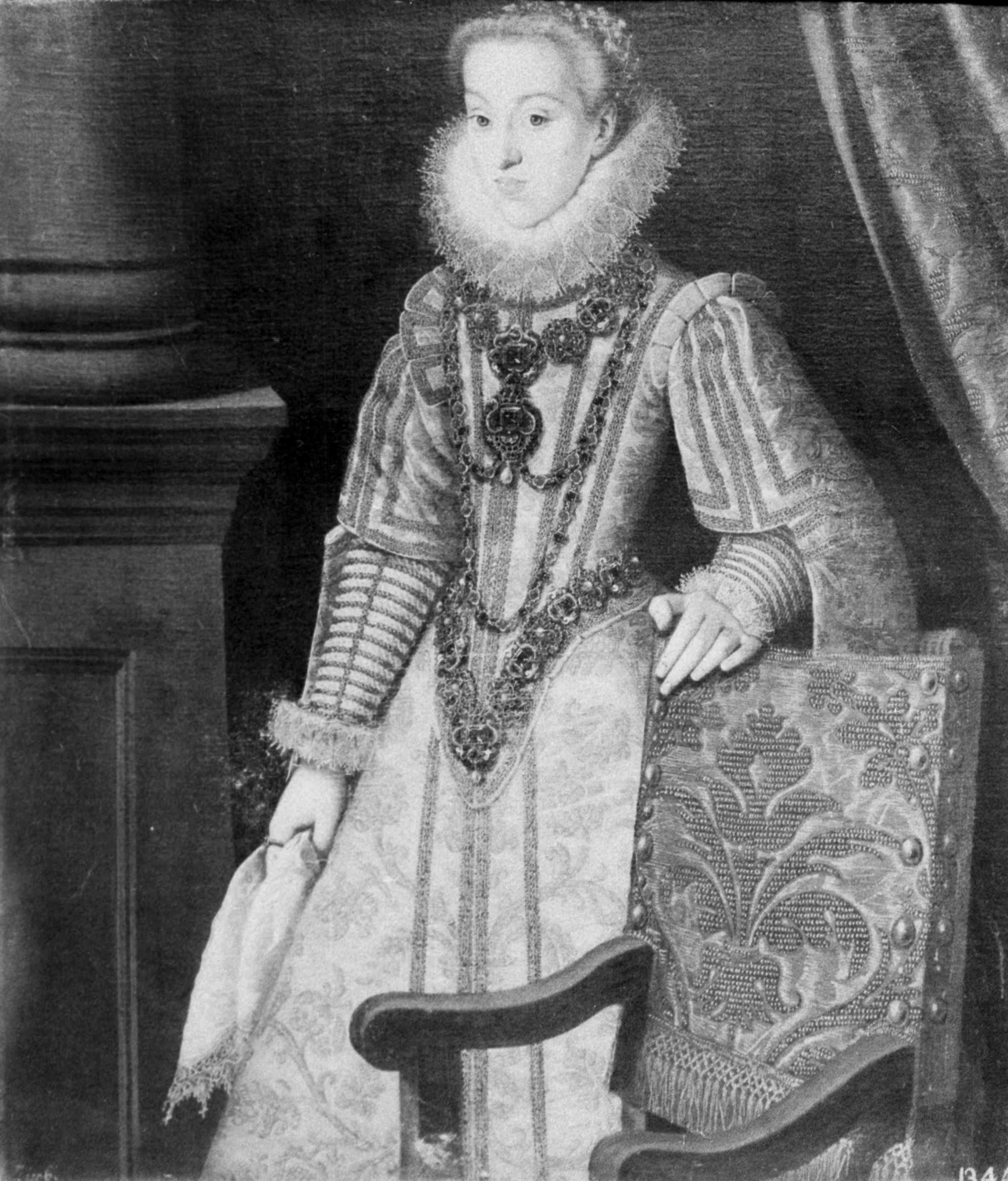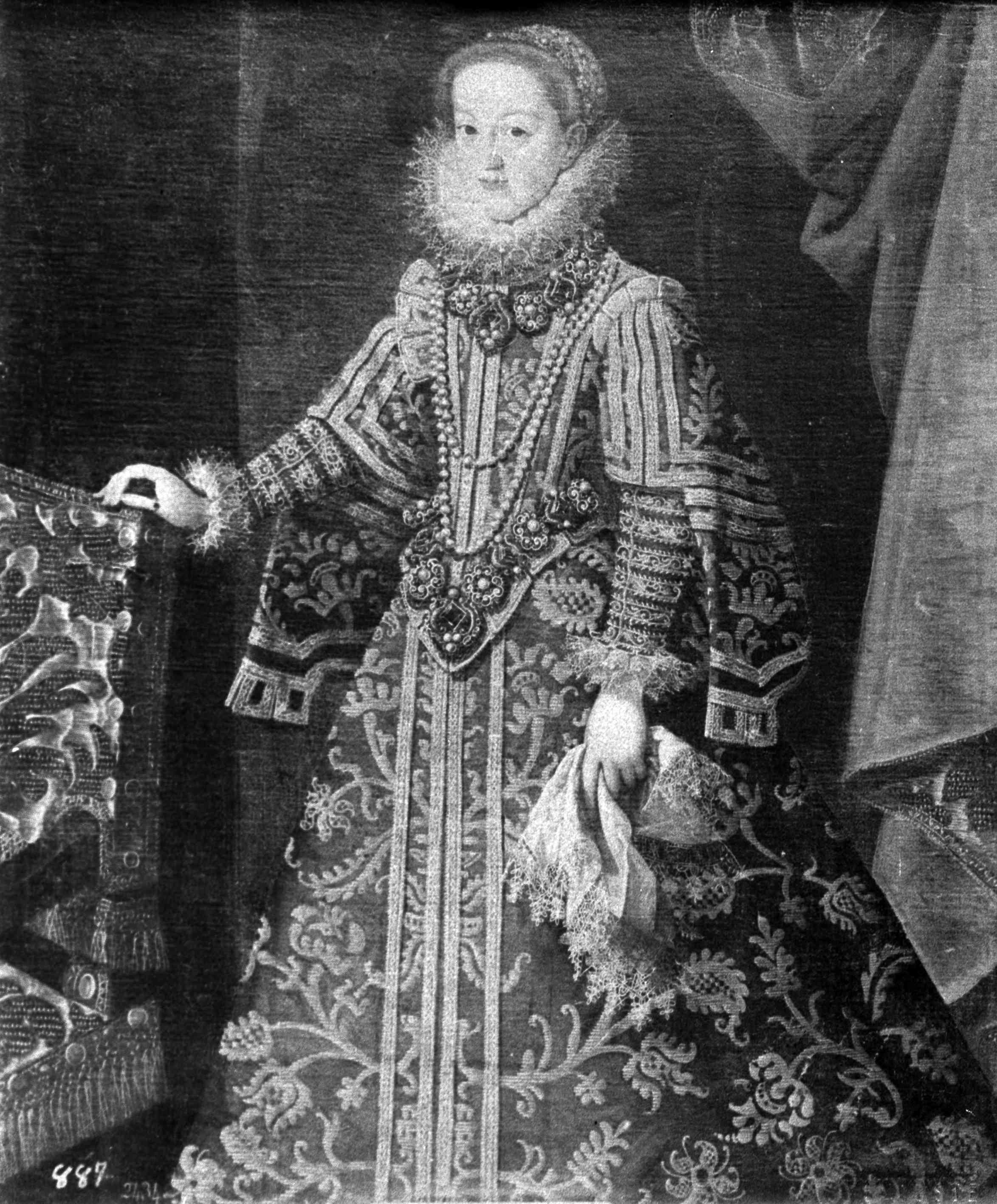«Padres y hermanos de la Señora Reina Doña Margarita. Treçe retratos de medio cuerpo arriba de los Padres y hermanos de la Señora Reina Doña Margarita, sin molduras, y los hiço Bartholome Gonçalez para el Pardo».