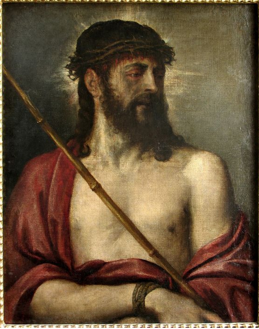 Con esta palabras agradecía el teórico italiano, Pietro Aretino, el regalo de una copia del Ecce Homo que el pintor veneciano acababa de realizar para el Emperador. La poética y exaltada descripción de la obra nos da dos pistas importantes sobre la comprensión y valoración de las pinturas de Tiziano por sus contemporáneos: la primera, no desmerece el hecho de tratarse de una copia, pues se entiende que no ha de tener menor calidad; la segunda, corrobora el éxito de una iconografía, que va a conocer múltiples variantes, incluso del propio Tiziano.