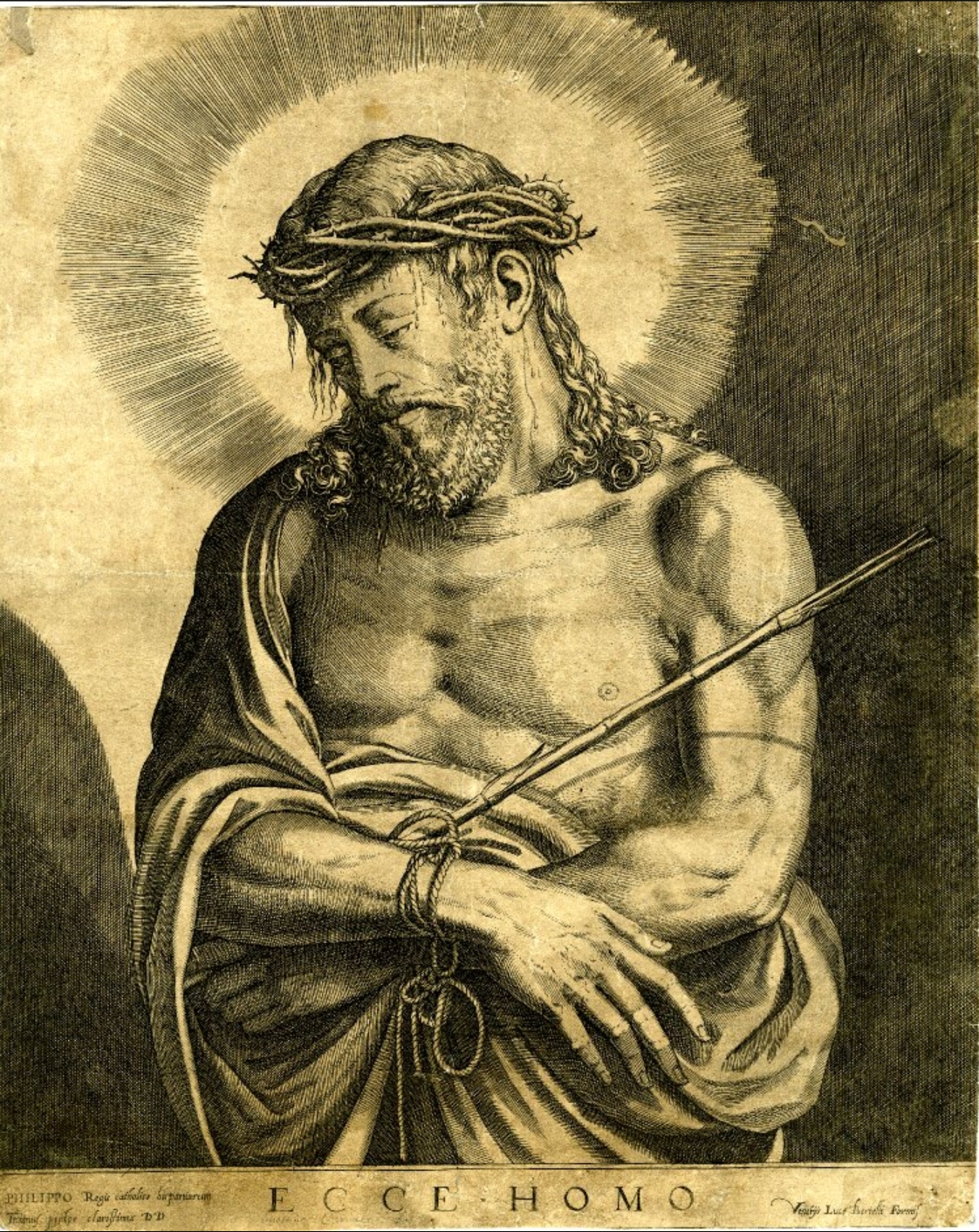 <<Otra vez salió fuera Pilato y les dijo: Aquí os lo traigo para que veáis que no hallo en Él ningún crimen. Salió, pues, Jesús fuera con la corona de espinas y el manto de púrpura, y Pilatos les dijo: Ahí tenéis al hombre>>