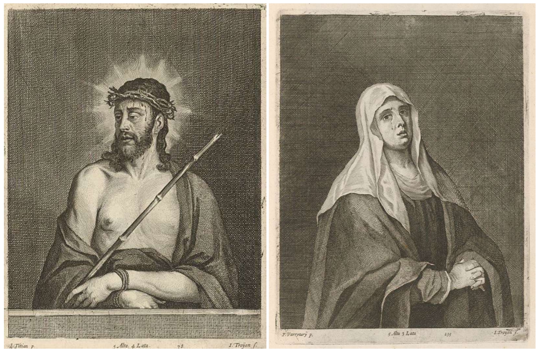 Al final de la Edad Media se difundirán desde la escuela flamenca y centroeuropea, modelos iconográficos que buscaban esa imagen que conmoviera al fiel. En ese sentido ha de entenderse la serie de estampas sobre la pasión de Cristo que grabó el alemán Alberto Durero y cuya imagen del Ecce Homo será tomada como modelo para esta iconografía. Desde el principio se van a difundir estas imágenes devocionales formando una pareja, en la que aparecerán Cristo y su madre, de tal forma que se aumentará así la piedad del fiel ante la contemplación de las dos figuras. El modelo pasará a Italia, donde los maestros del Renacimiento harán una interpretación en este lenguaje, destacando en ese sentido las versiones que hizo Tiziano para los Habsburgo y que desde el mismo siglo XVI van a estar en España, como son el Ecce Homo y Dolorosa del Museo del Prado. Ambas obras fueron hechas para el Emperador Carlos, que las llevó con él a Yuste, y posteriormente, con Felipe II, fueron trasladadas a El Escorial. Los nuevos cultos intimistas promovidos por la Contrarreforma católica y las nuevas órdenes, como los ejercicios espirituales de los jesuitas o la contemplación de imágenes religiosas promovidas por los carmelitas, suscitarán un mercado de obras de pequeño formato, para oratorios privados. Así los manuales de devoción más utilizados en el ámbito hispánico, como podían ser los textos de Fray Luis de Granada pedían expresamente usar estas imágenes para hacer ejercicios devocionales: